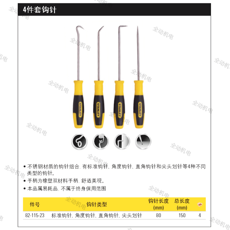 STANLEY 史丹利 4件套 钩针 标准角度直角 尖头划针 82-115-23