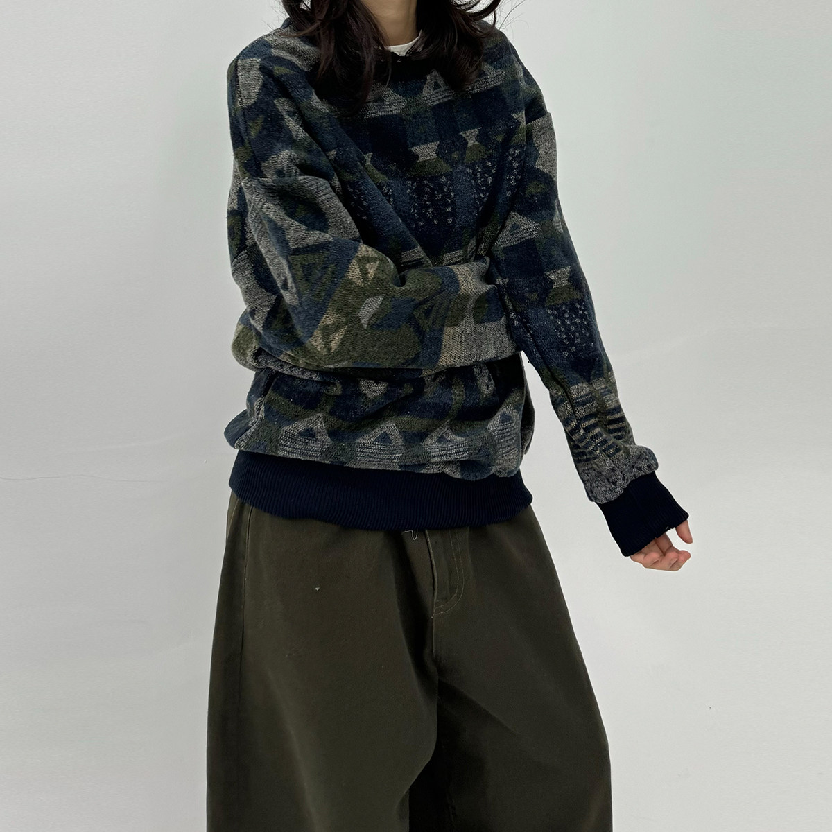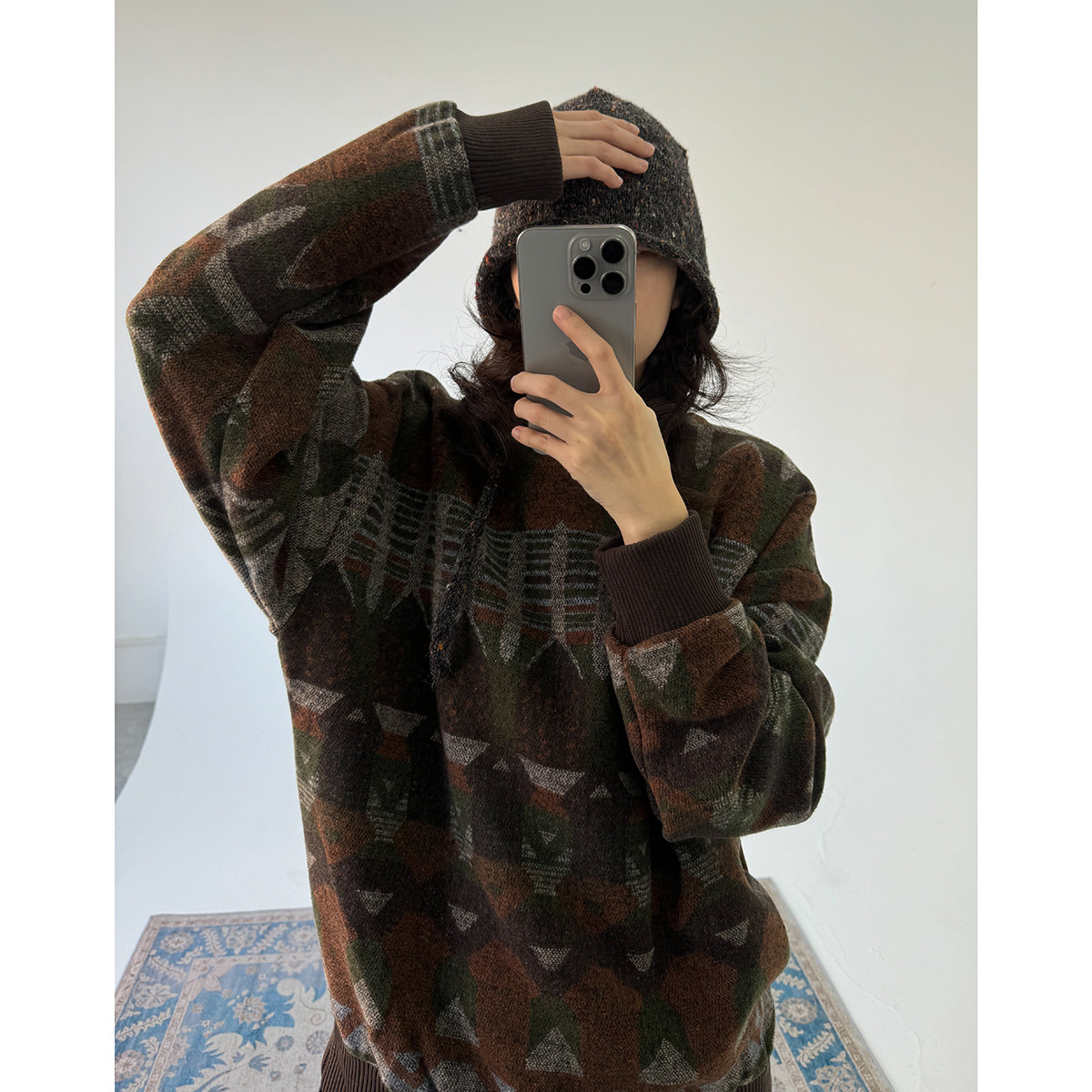 Sleepzoo 24AW 秋冬日系复古小众文艺几何民族风拼接套头卫衣女