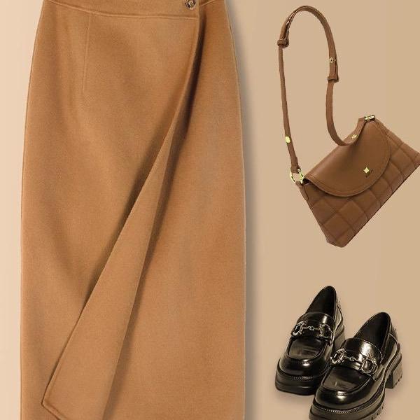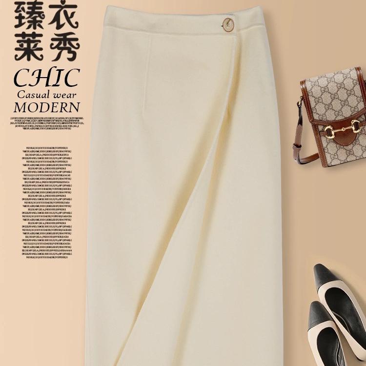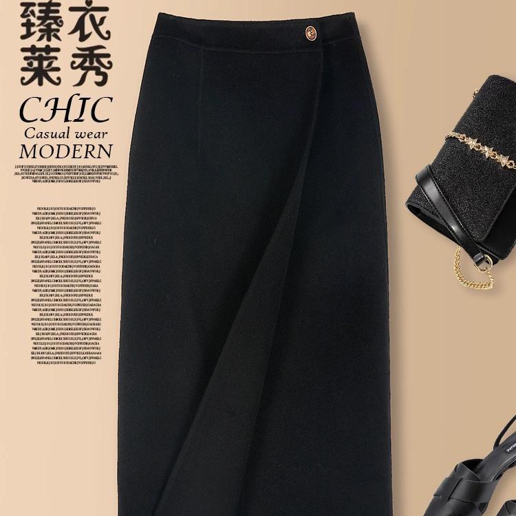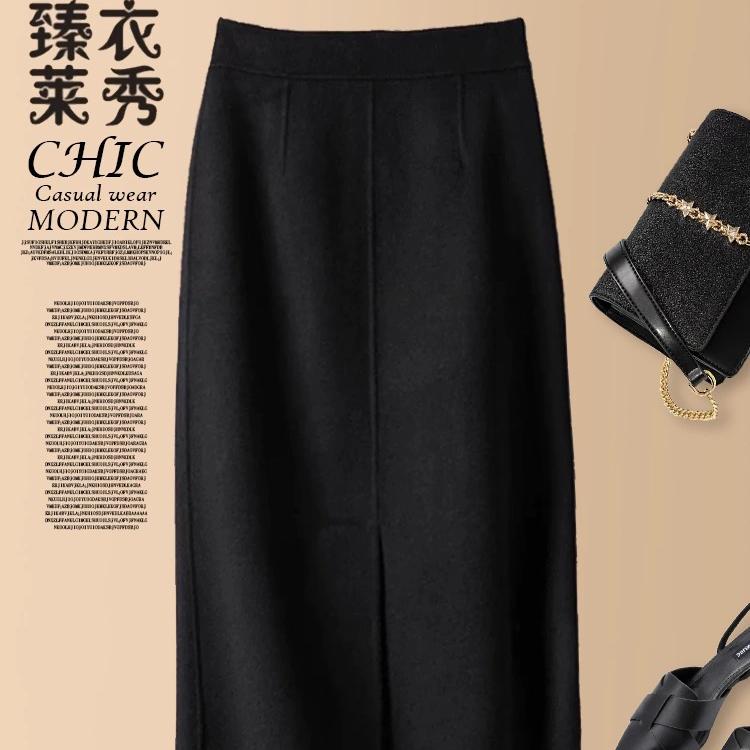 羊毛毛呢半身裙一步裙女直筒a字中长款裙开叉显瘦高腰包臀裙