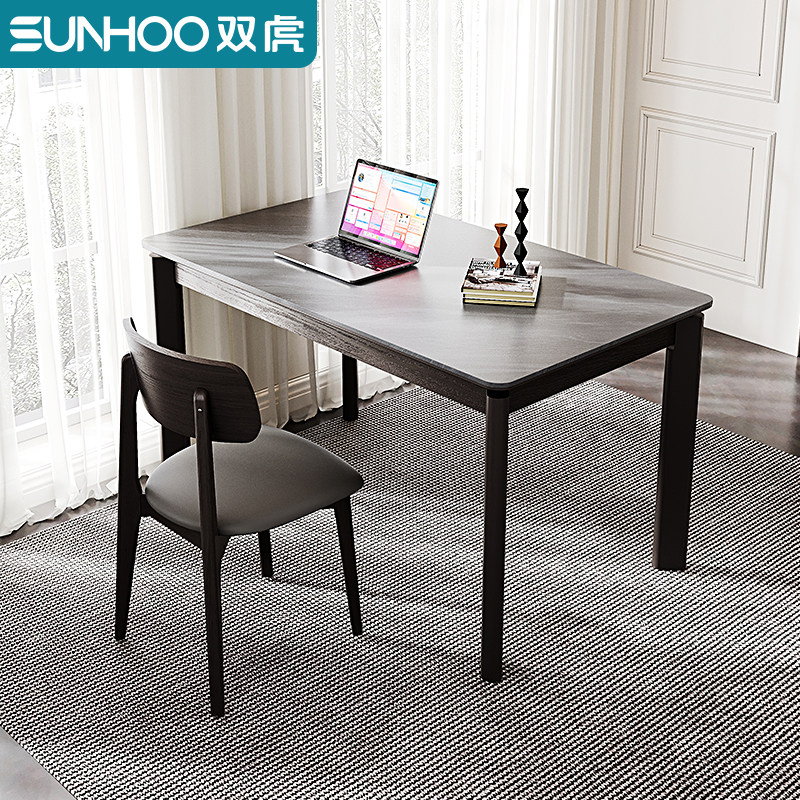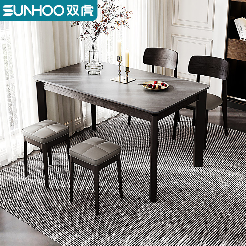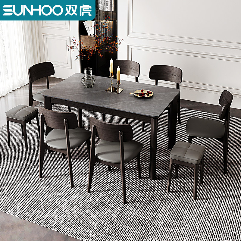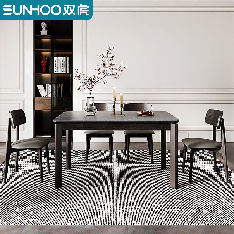 双虎岩板餐桌家用小户型现代意式轻奢黑色饭桌餐厅长方形桌椅111