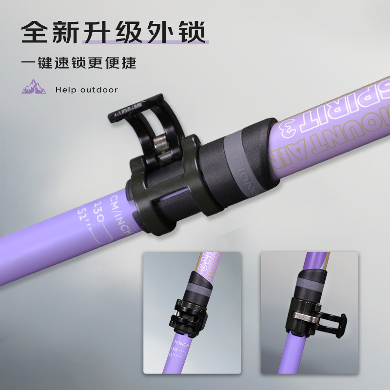 2025新型外锁三节伸缩碳素手杖 99%碳纤维登山杖户外徒步旅行装备