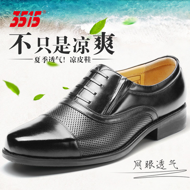 3515强人三接头皮鞋男春夏真皮透气镂空皮凉鞋商务正装三节头皮鞋