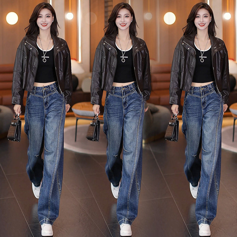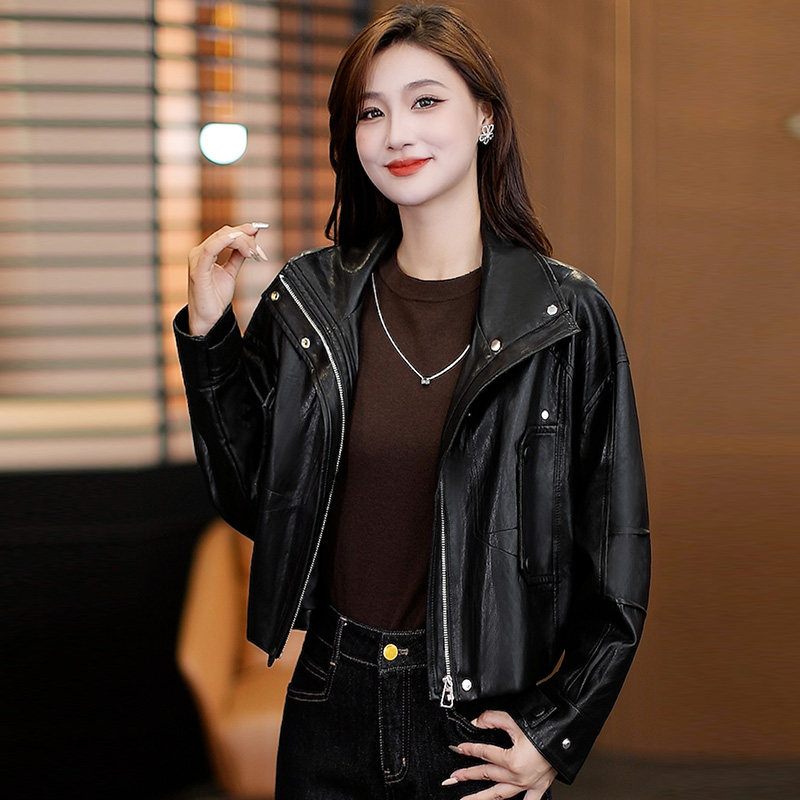 黑色美式复古pu皮外套女春秋新款高级感气质宽松机车皮夹克皮衣