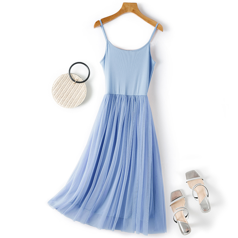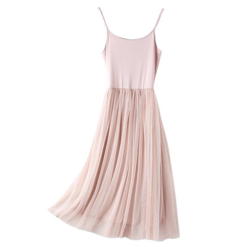 莫代尔内搭吊带连衣裙女春秋显瘦长裙2025年新款外穿百搭网纱裙子