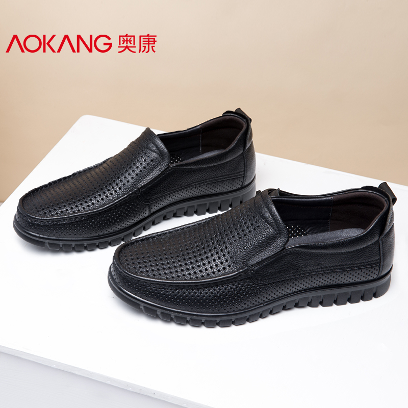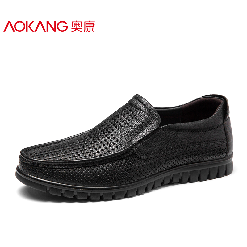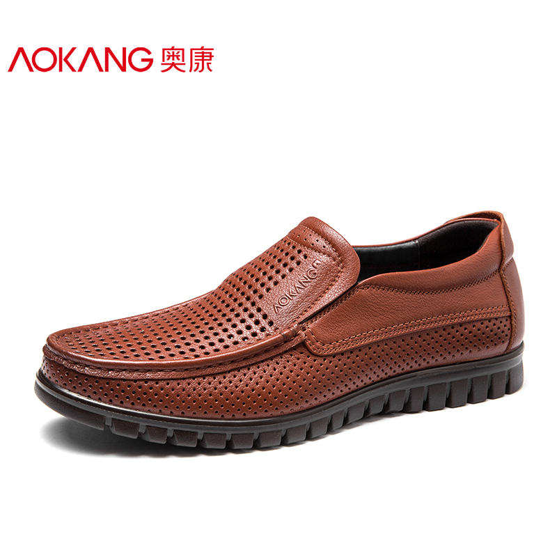奥康夏季男士皮鞋透气真皮凉鞋休闲中老年爸爸洞洞鞋1215814012