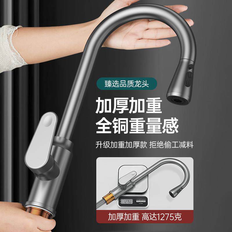 九牧王全铜厨房龙头冷热抽拉式家用洗菜盆洗碗池水槽伸缩专用龙头