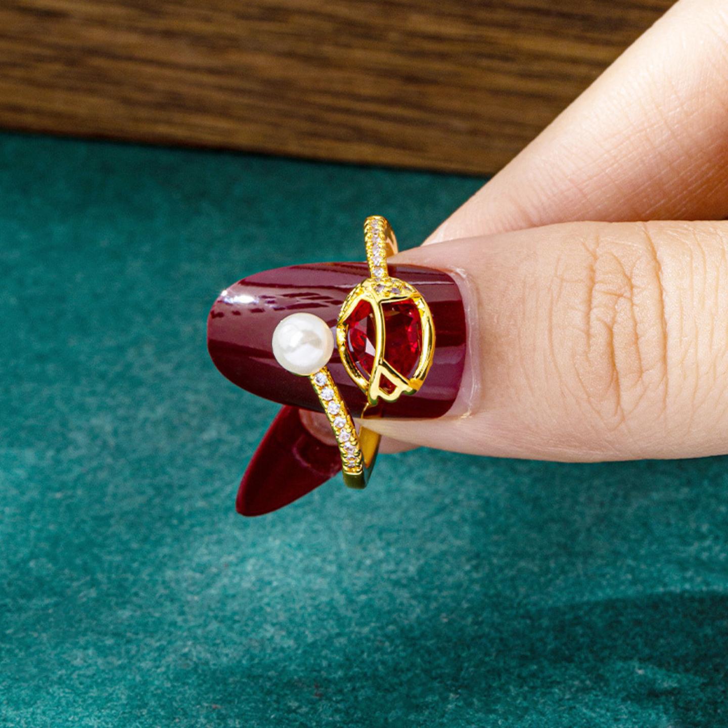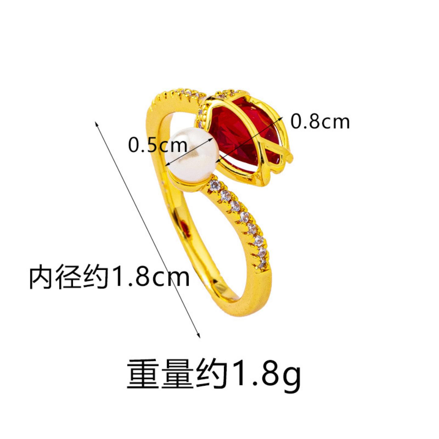 爆款镶锆郁金香戒指女越南沙金仿珍珠环绕开口食指戒久不掉色饰品
