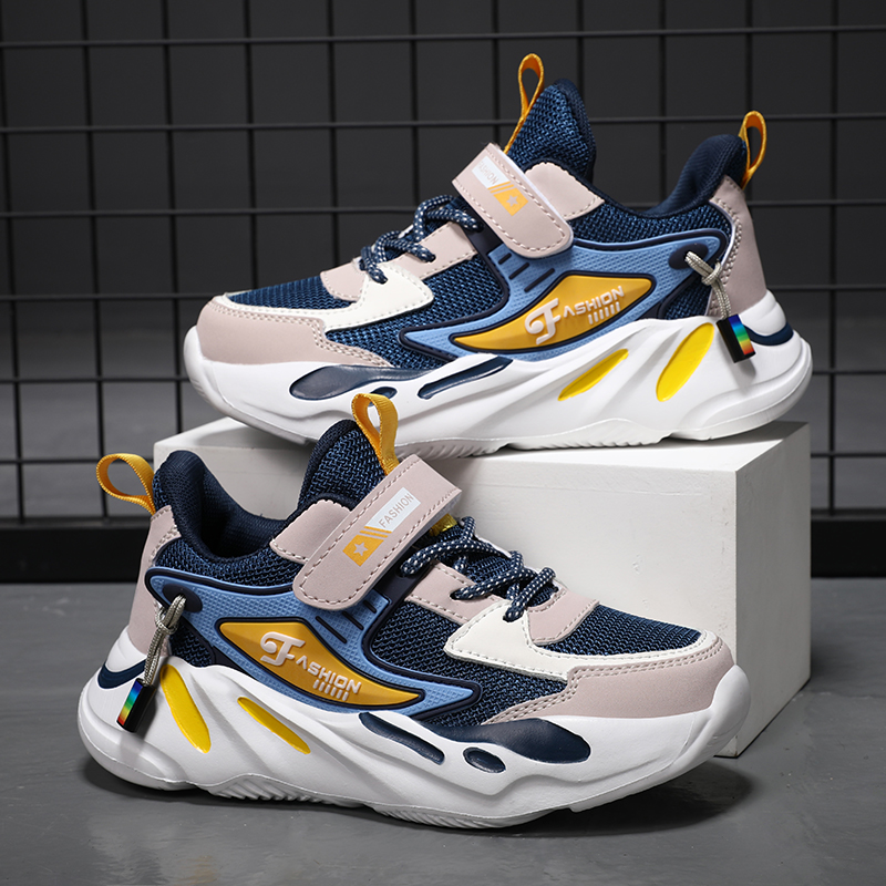 品牌男童鞋春秋新款中大童皮面防水小学生跑步透气网鞋儿童运动鞋