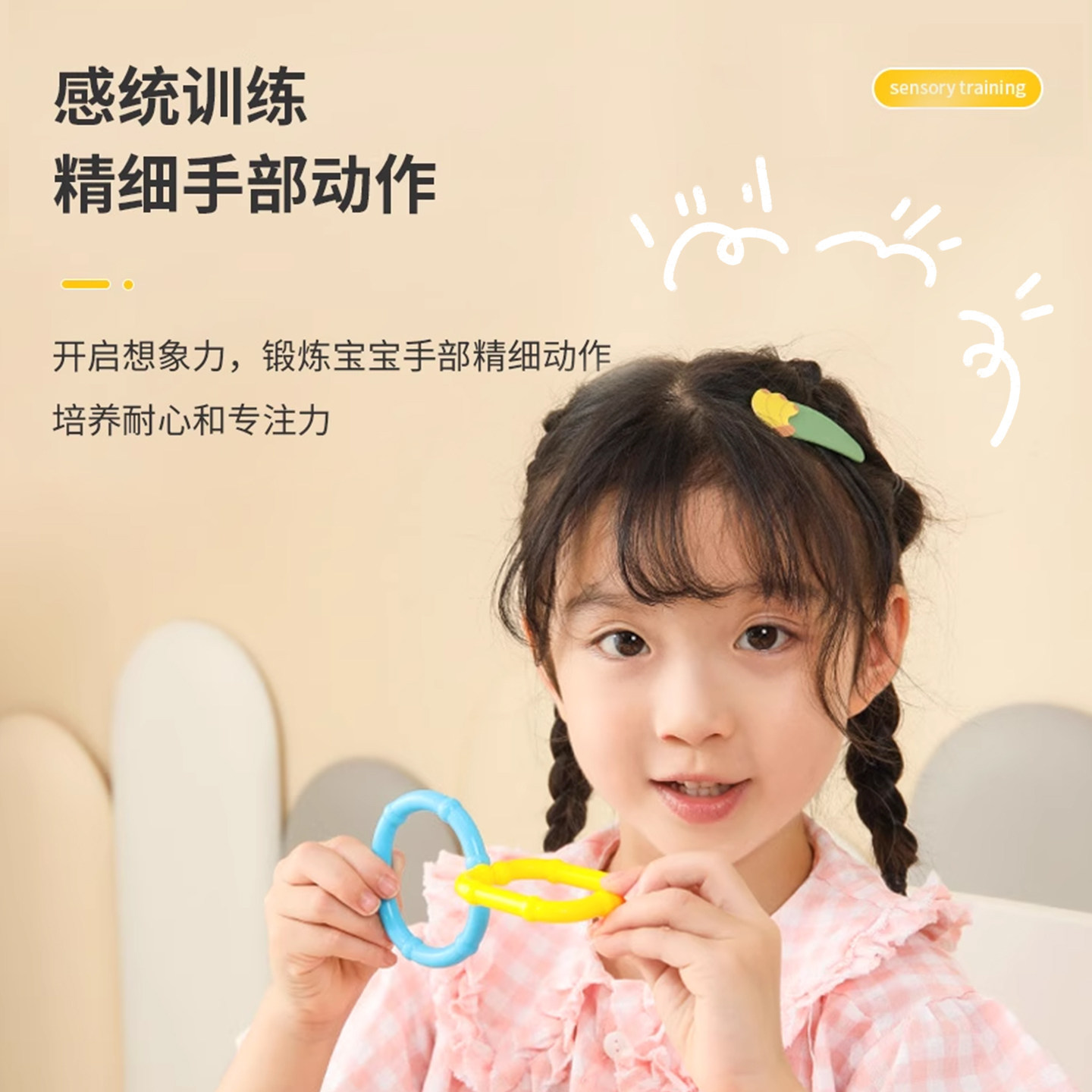 几何链条连环扣塑料积木儿童2岁3宝宝幼儿园小班早教益智扣环玩具