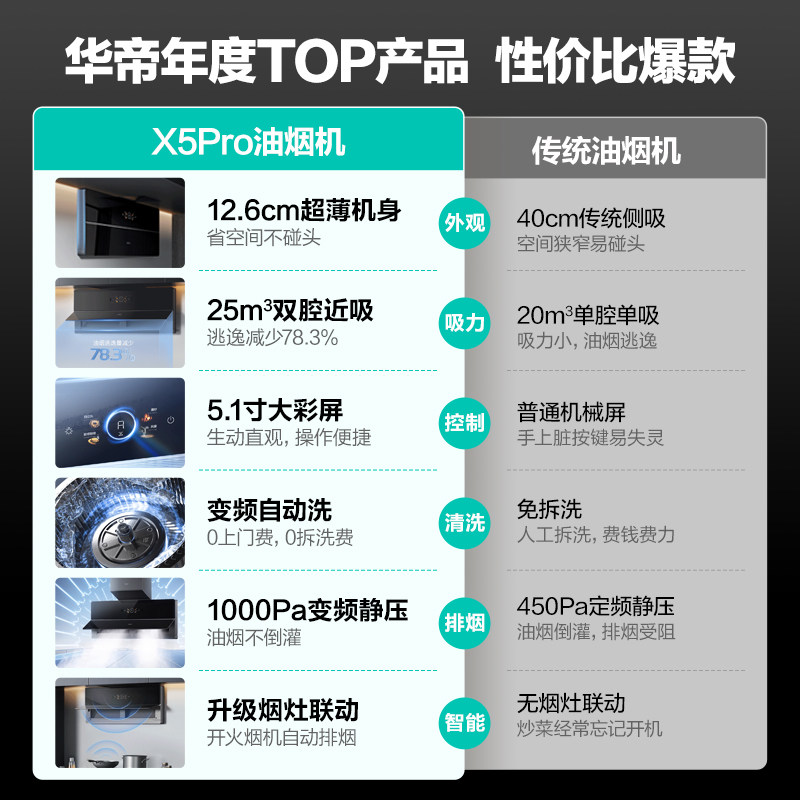 华帝油烟机X5超薄近吸抽油烟机家用厨房大吸力变频侧吸官方旗舰店