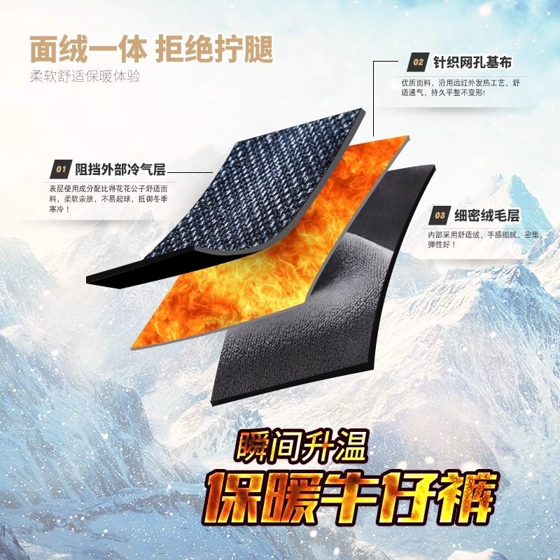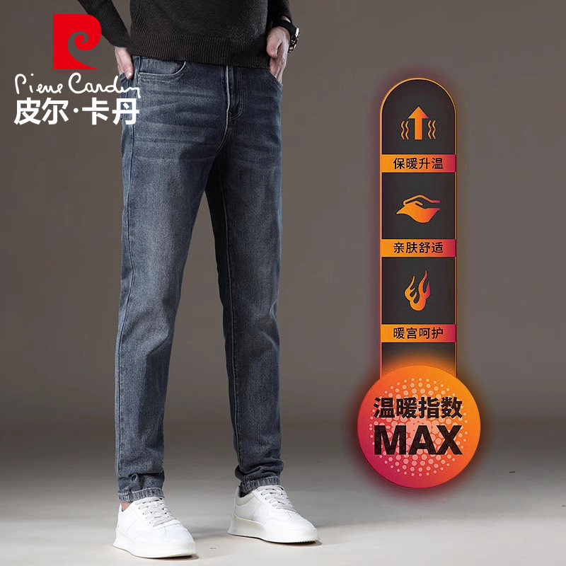 皮尔卡丹加绒牛仔裤男士秋冬季加厚保暖修身宽松直筒2025新款长裤