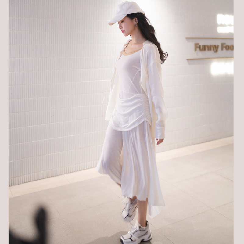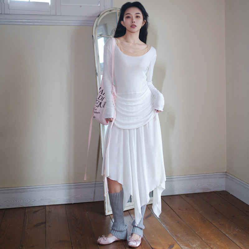 芭蕾风天丝两件套轻薄不规则长裙