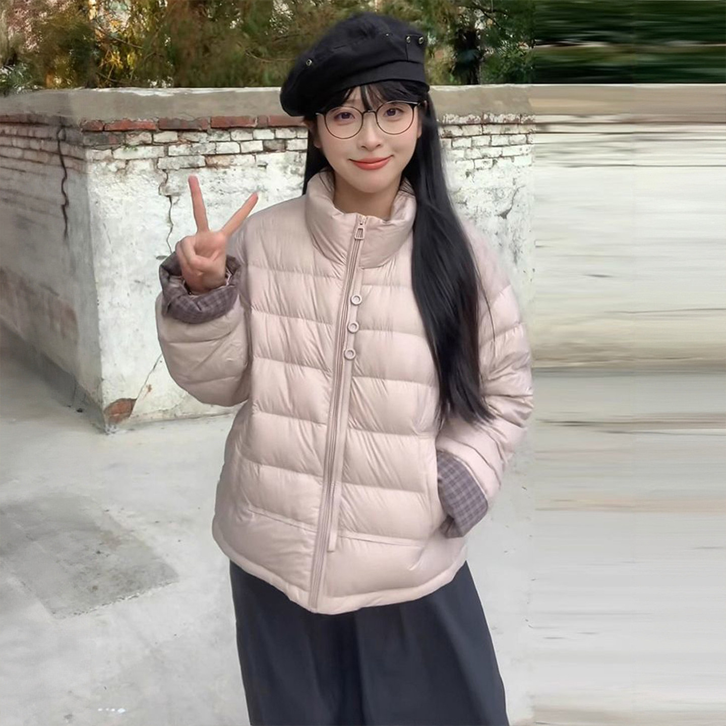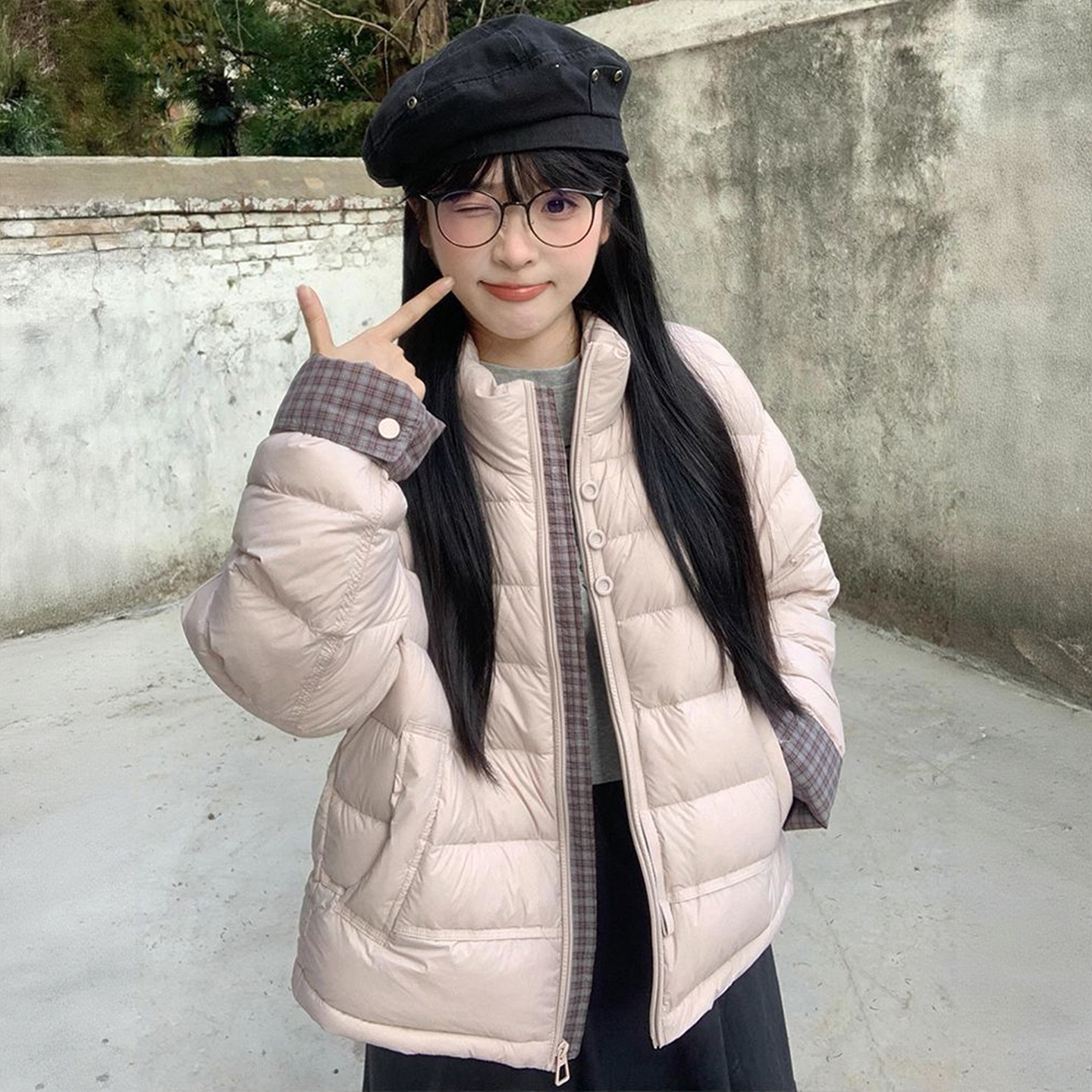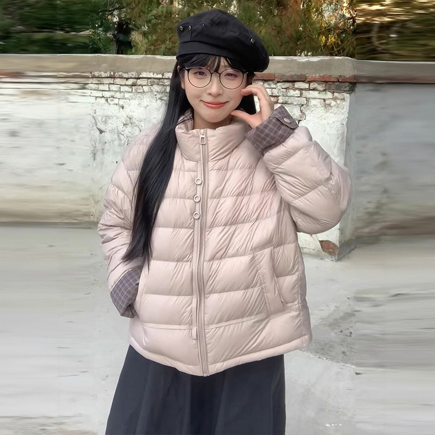 大码女装高级感气质粉色棉服外套
