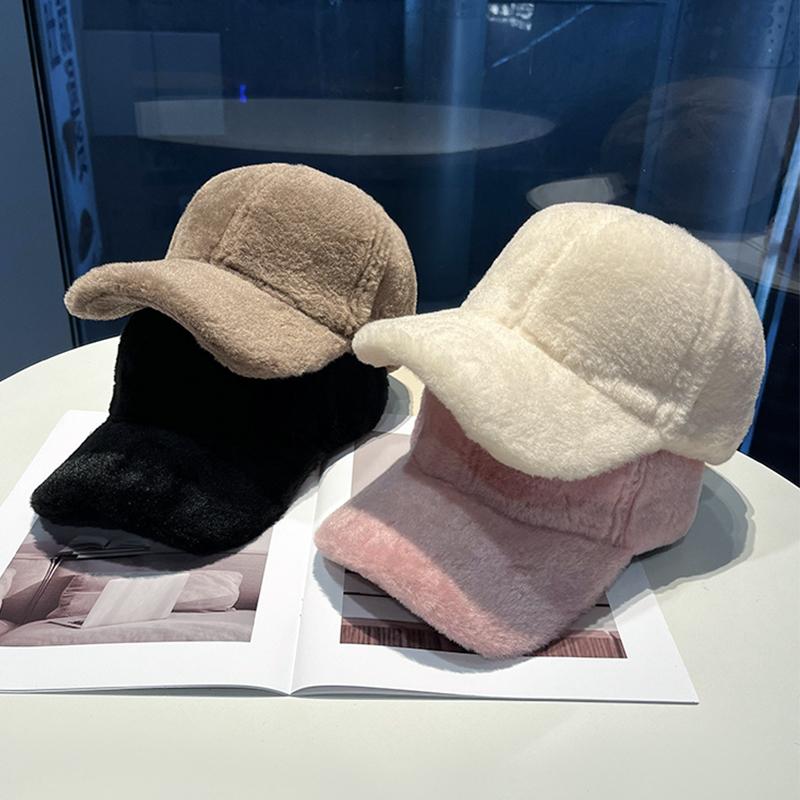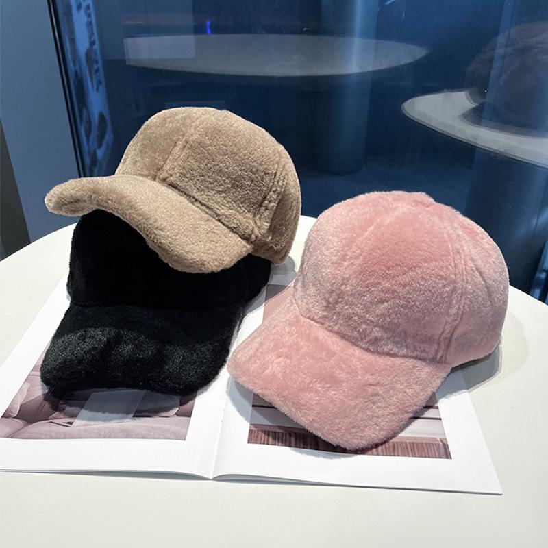 韩版兔毛绒棒球帽子女秋冬季保暖纯色帽男百搭毛绒绒显脸小鸭舌帽