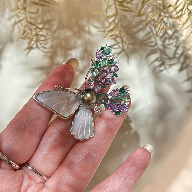 《梦蝶》天然大溪地黑珍珠彩色蝴蝶胸针高级大衣配饰送礼2024新款