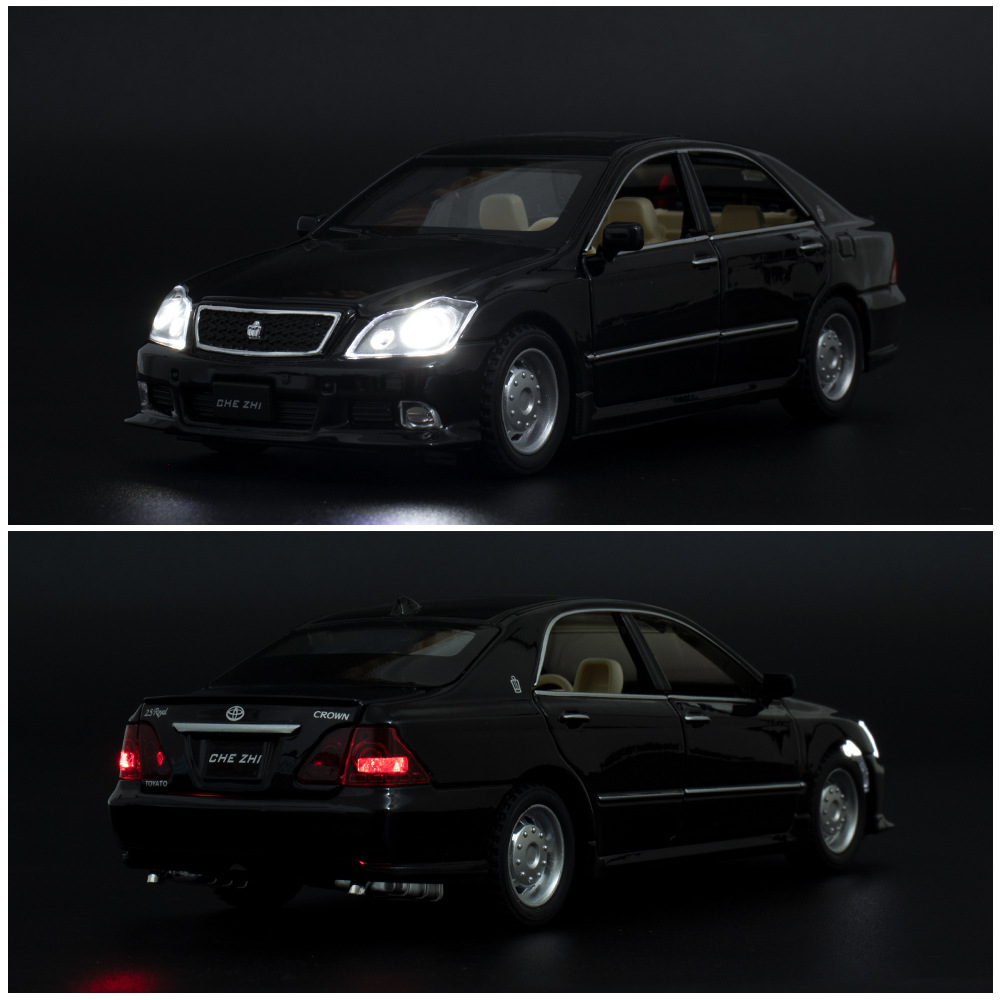 车致1:32丰田皇冠六开门仿真合金声光回力汽车模型儿童玩具车