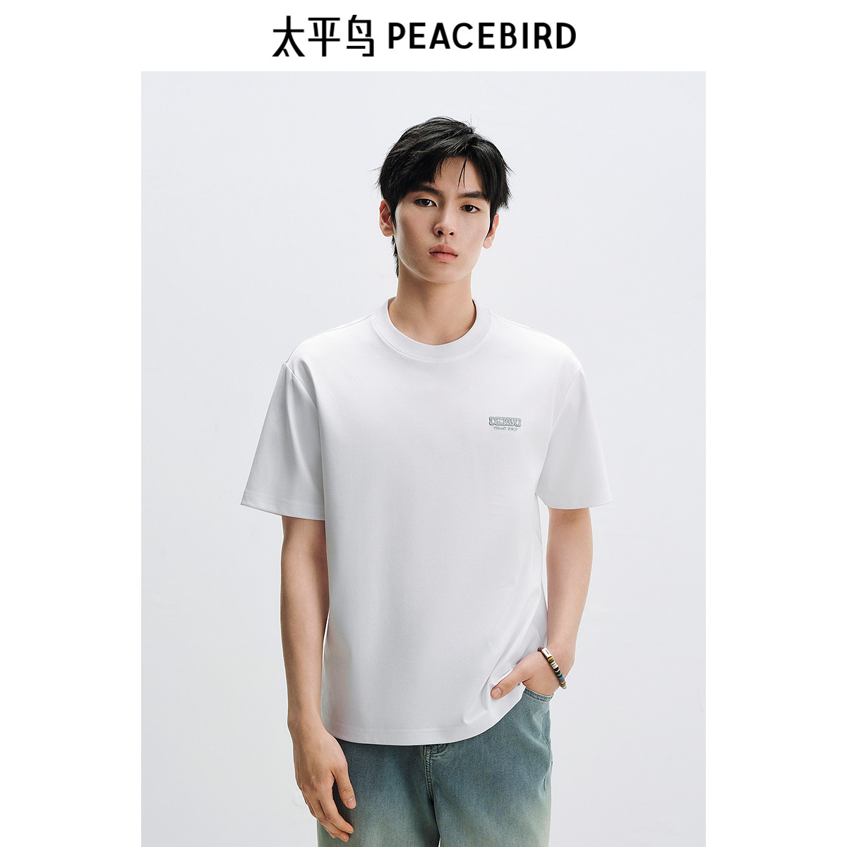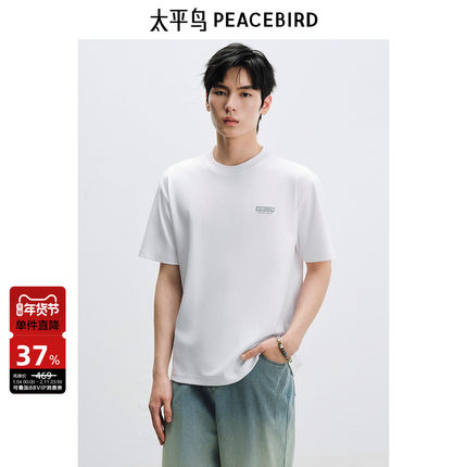【重磅】太平鸟男装刺绣短袖T恤25夏新款圆领纯色白t时尚青年体恤