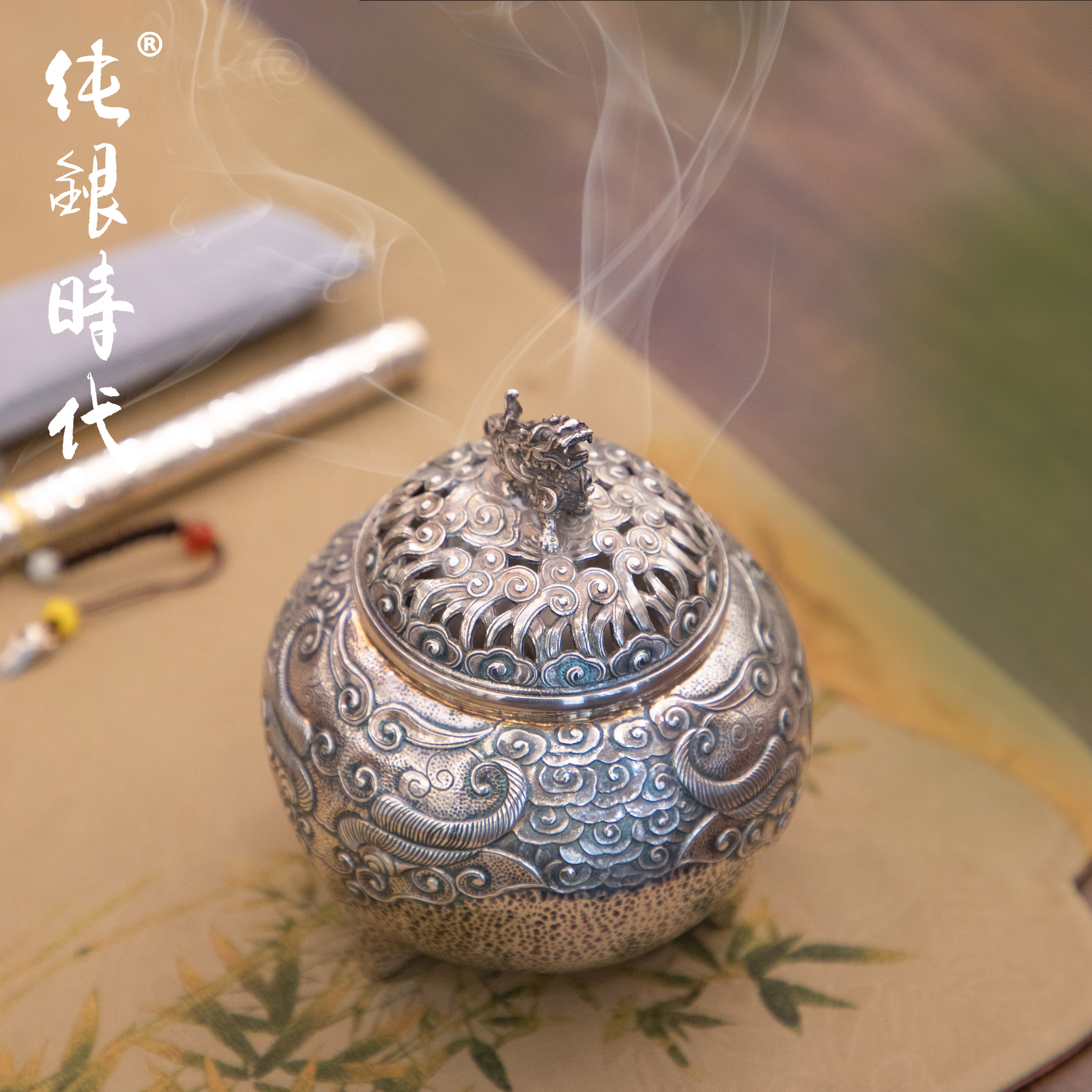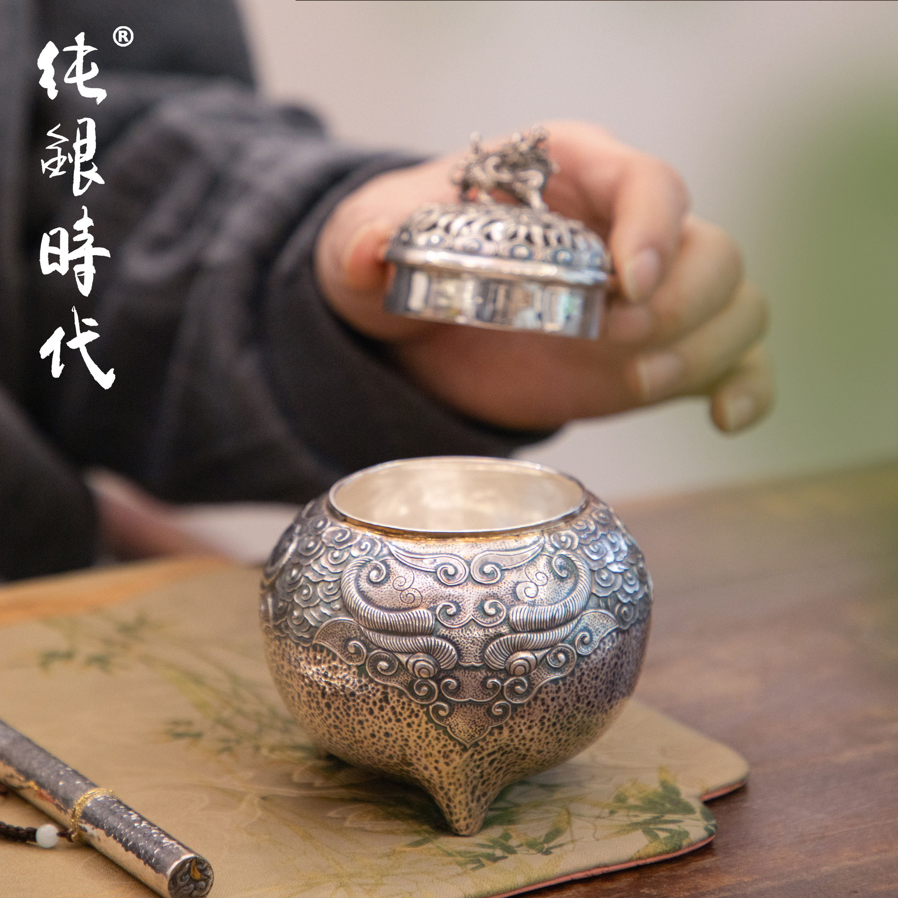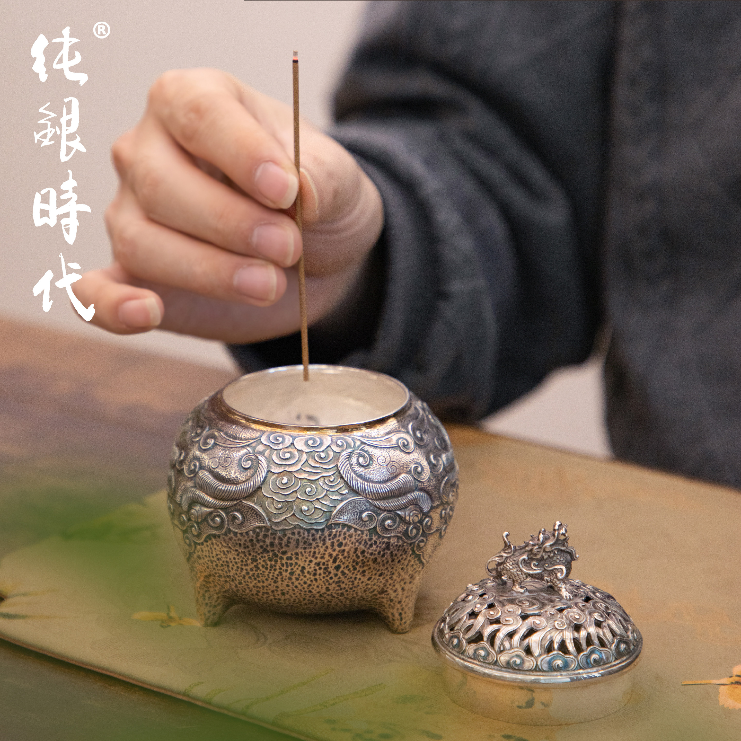 纯银时代 麒麟踏云香炉纯银999非遗大师杨松柱制香薰炉茶道香器