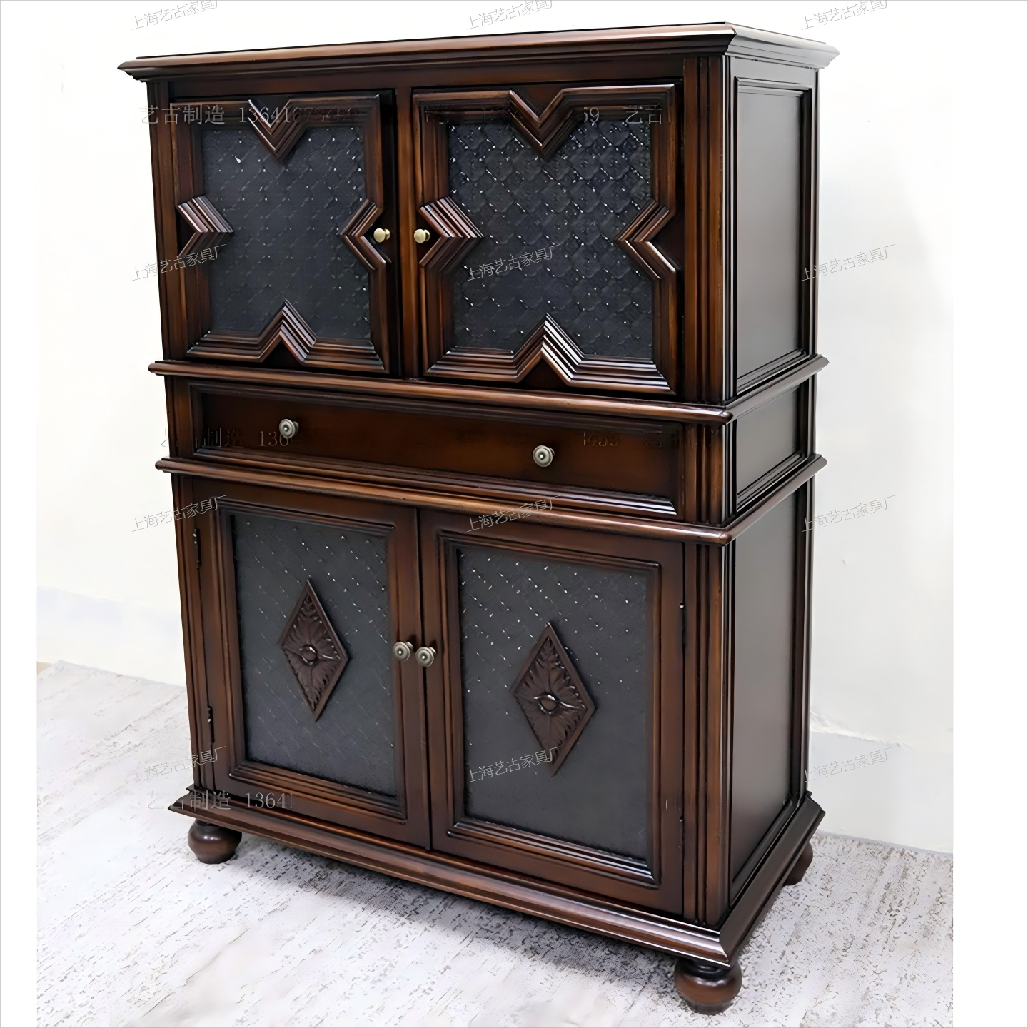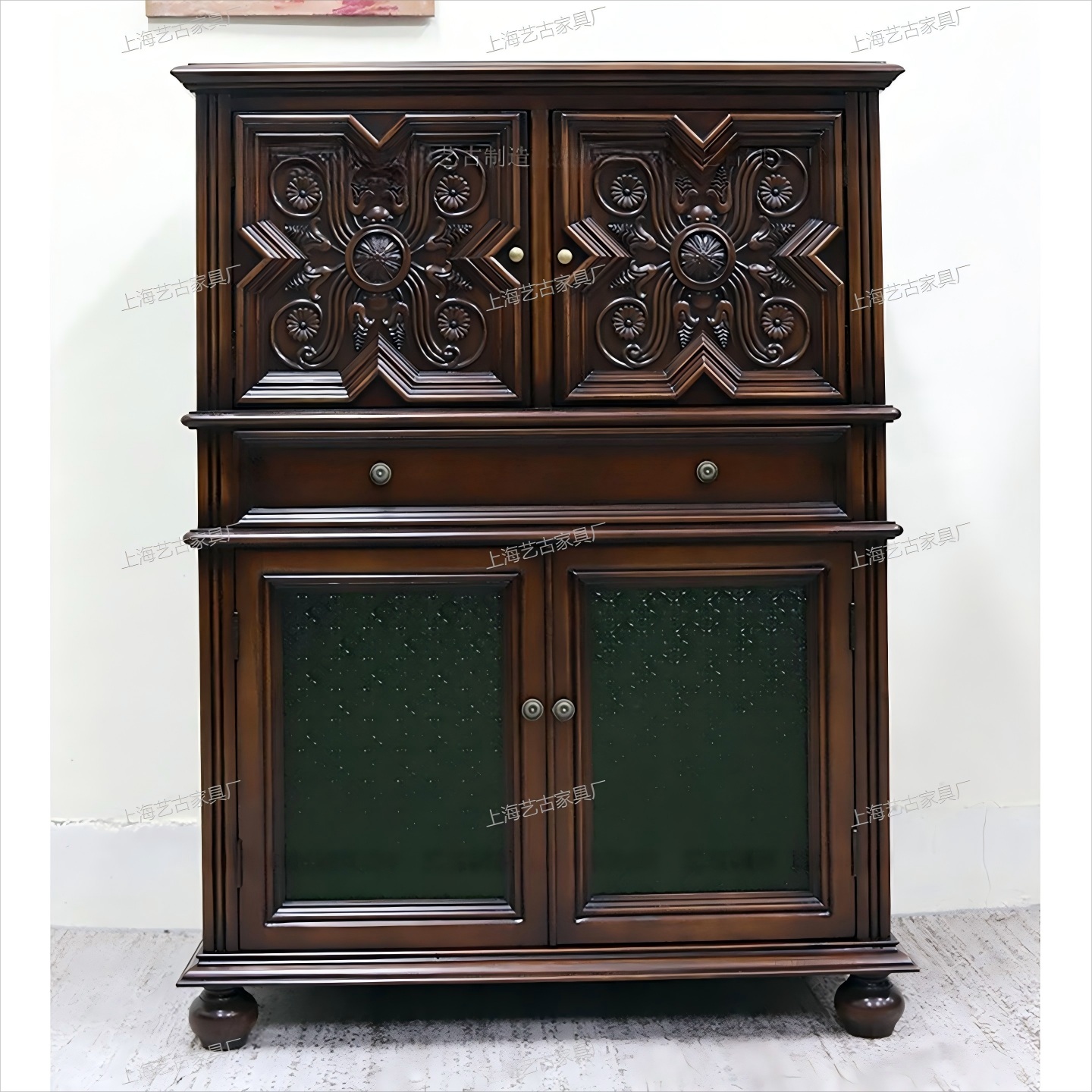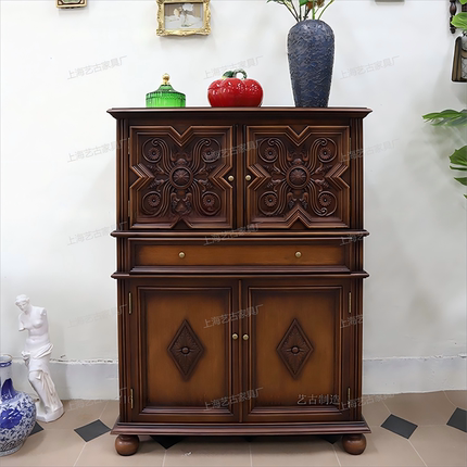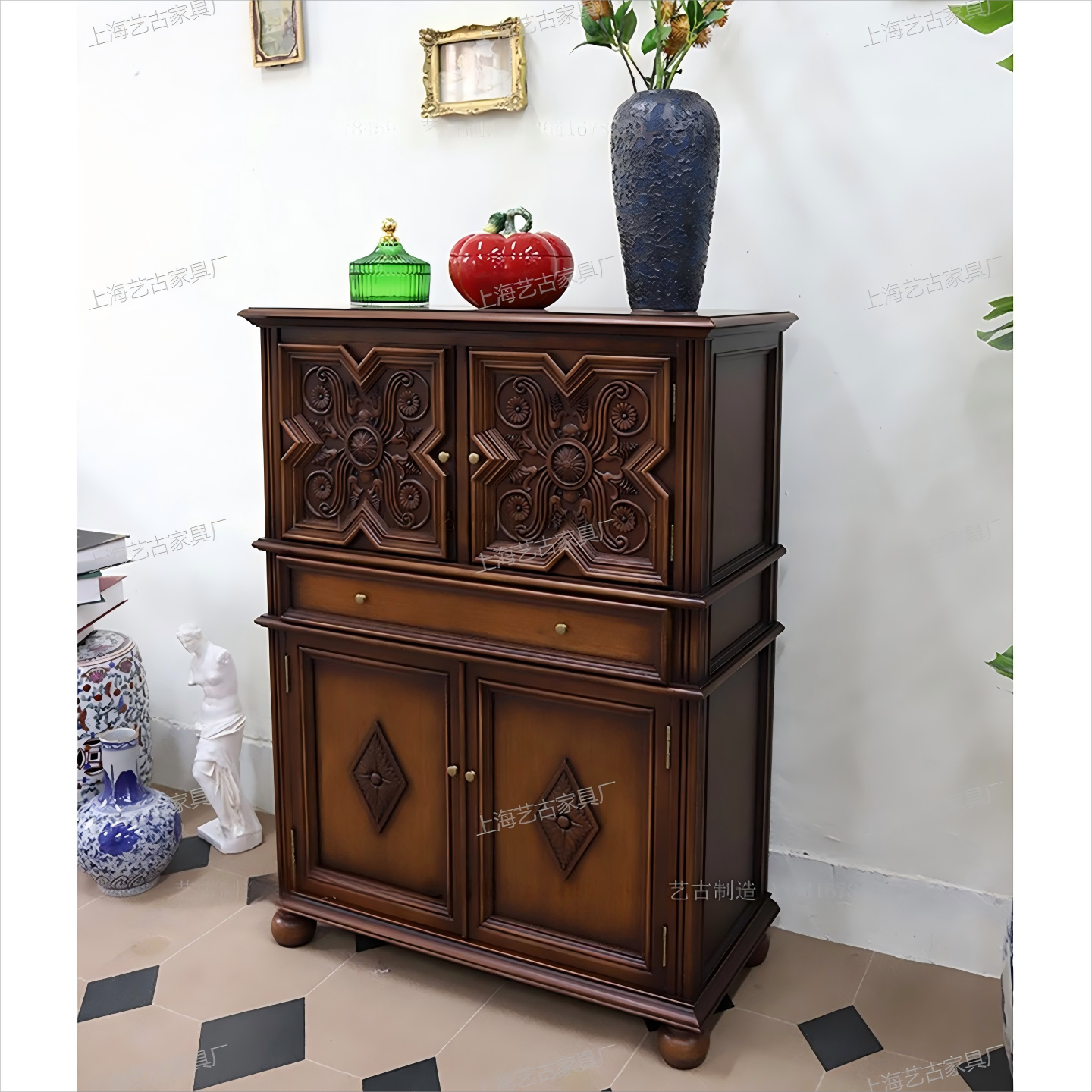 法式复古实木榫卯家用餐边柜储物柜茶水柜边柜酒柜欧式靠墙雕花柜
