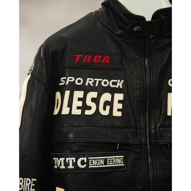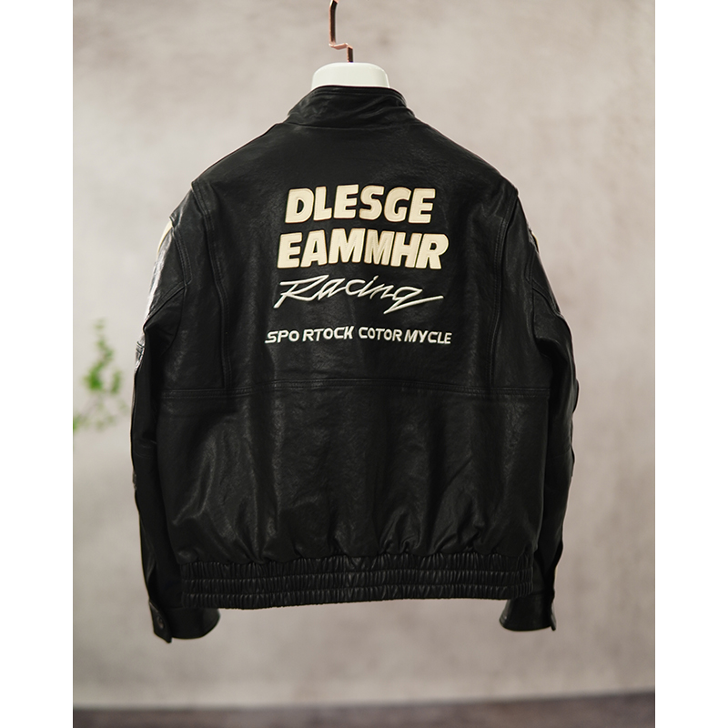 2025新哈雷机车绵羊皮宽松真皮袖标短款夹克潮酷皮衣女B1918