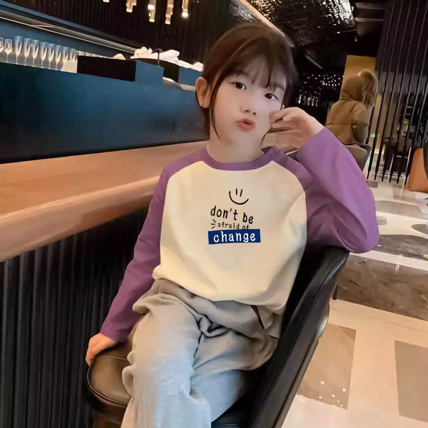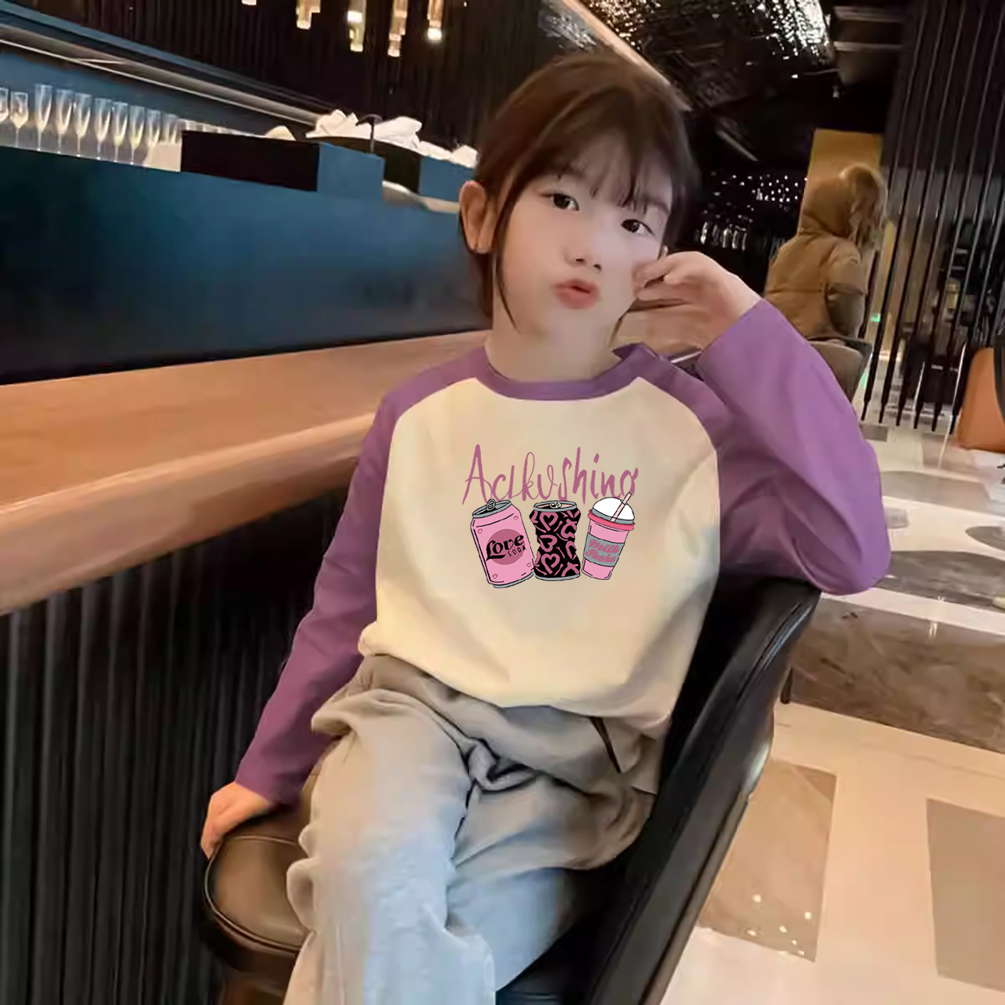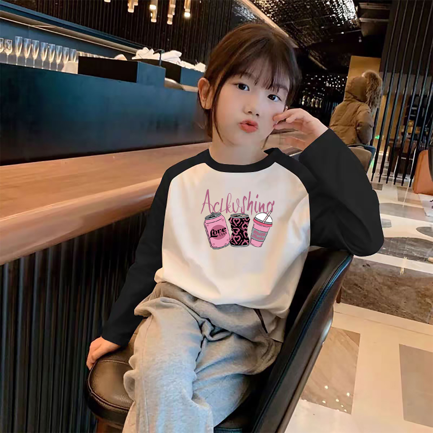 女童纯棉长袖T恤中大童插肩袖秋装开学季新款打底衫儿童春秋上衣