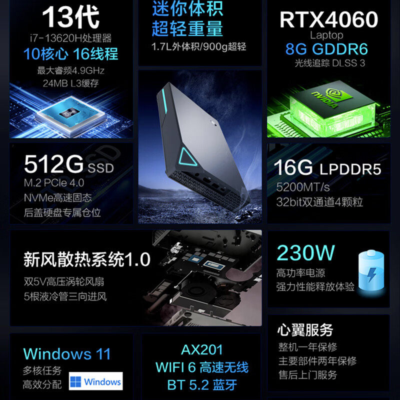 雷神MIX迷你主机13代 i7 RTX4060软路由游戏办公mini电脑台式机