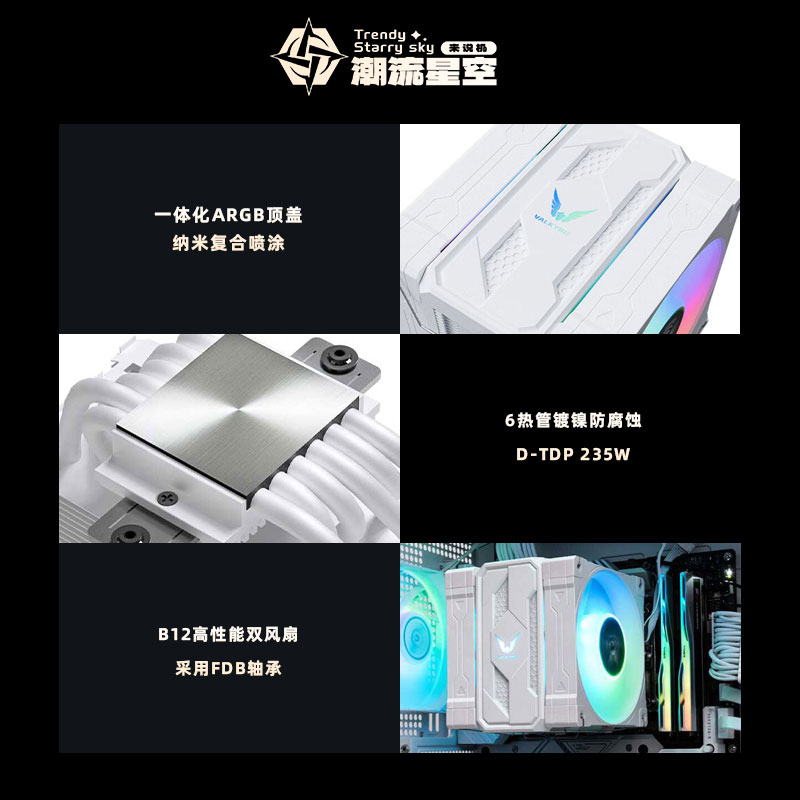 VK瓦尔基里电脑CPU风冷散热器CL125塔式风冷六热管12CM双风扇PWM