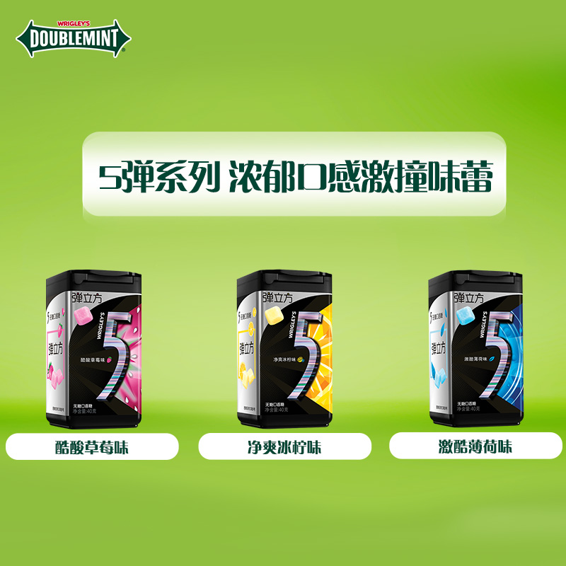 绿箭口香糖无糖弹立方木糖醇40g瓶装草莓柠檬薄荷糖果零食薄荷糖