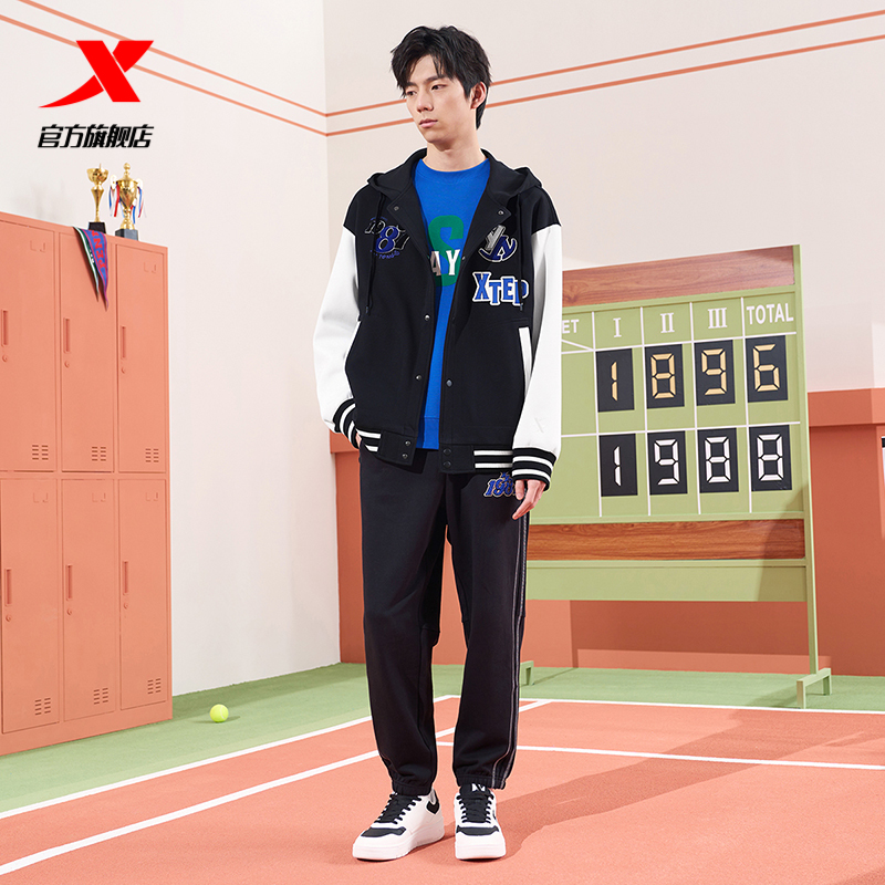 特步运动外套男棒球服2024春季加厚连帽校园风上衣976129940528