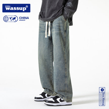 DORA WASSUP男士直筒牛仔裤秋冬季长裤复古水洗加绒宽松裤子男潮