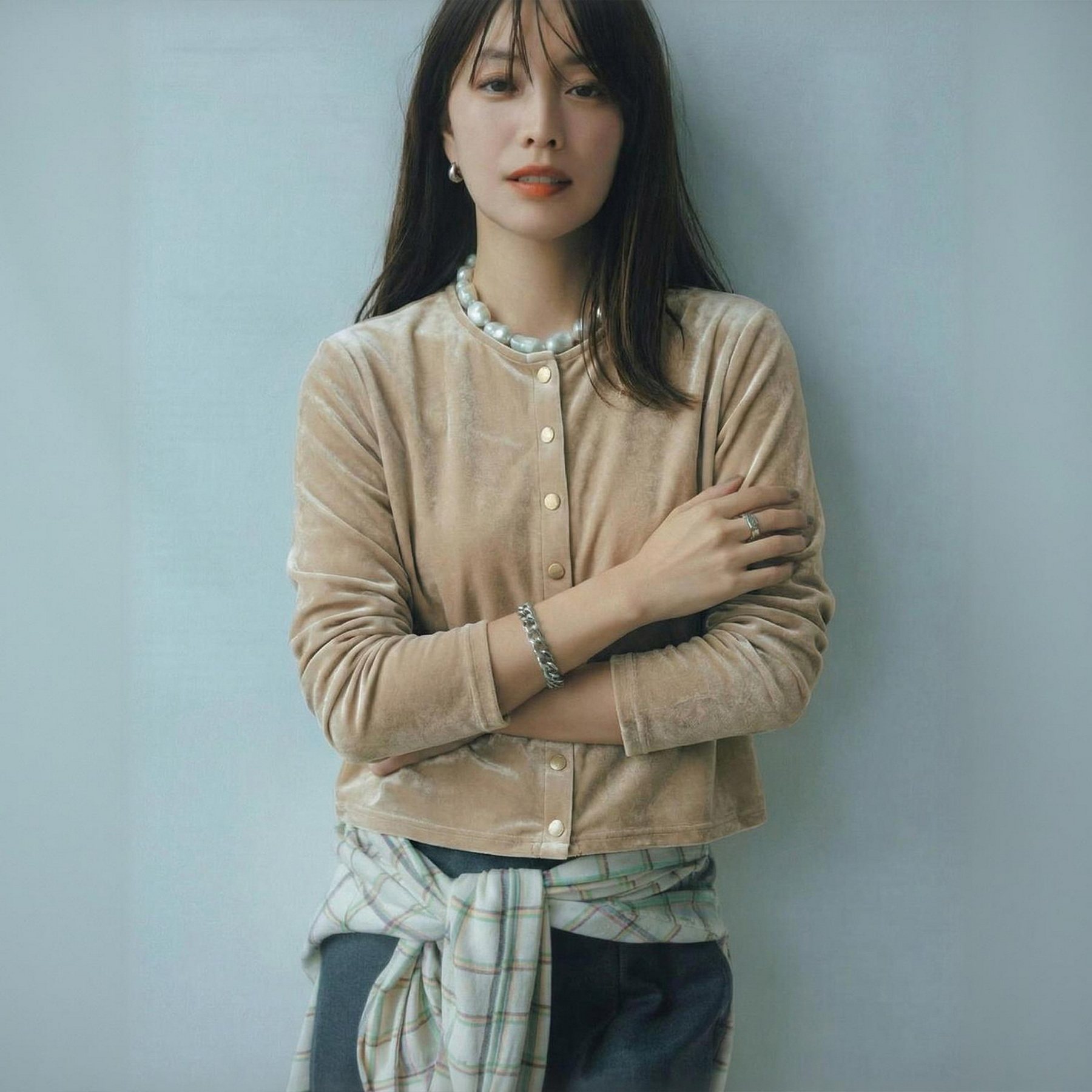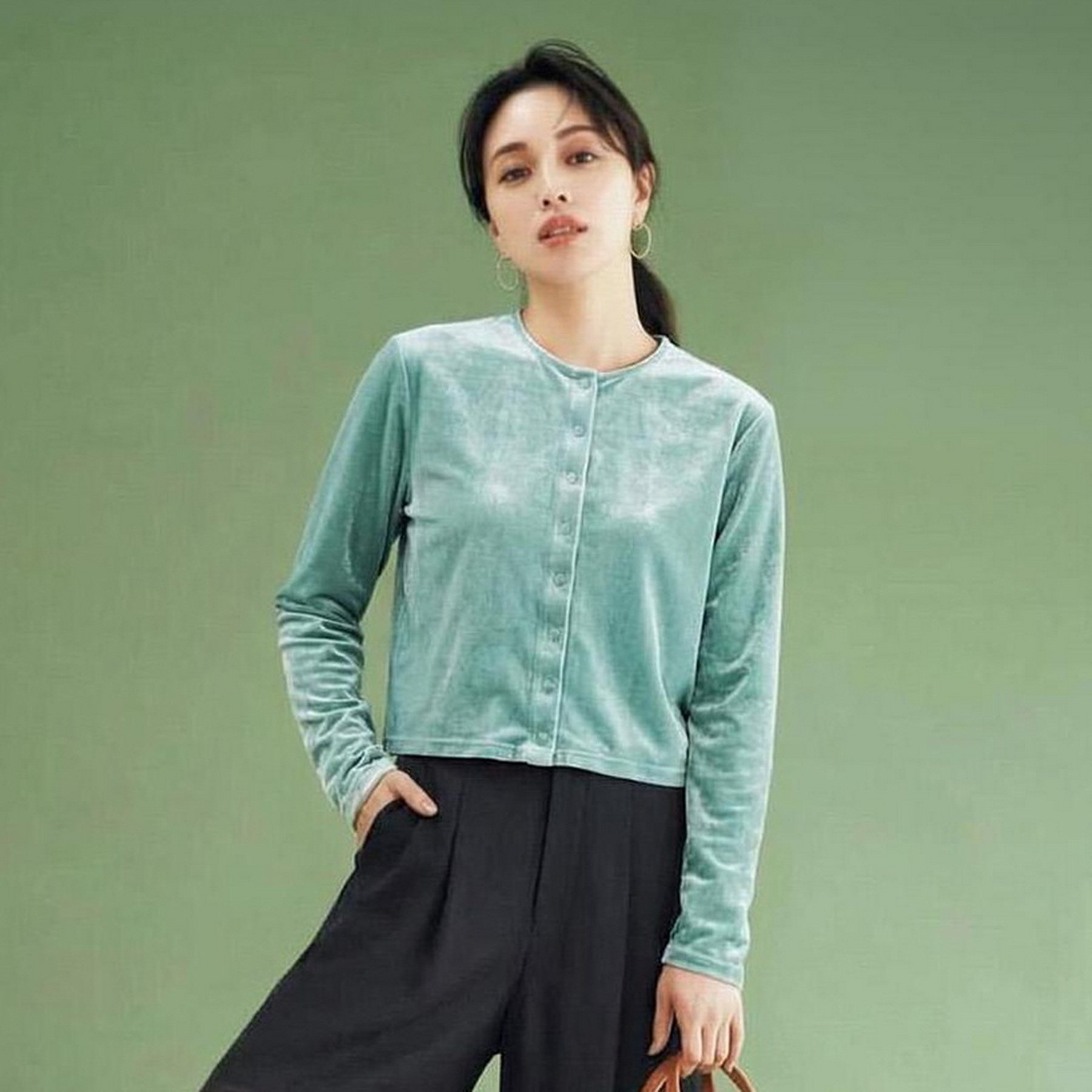 进店苾入~MO家人气款 客供舒弹雅致光泽天鹅绒包扣百搭短款开衫