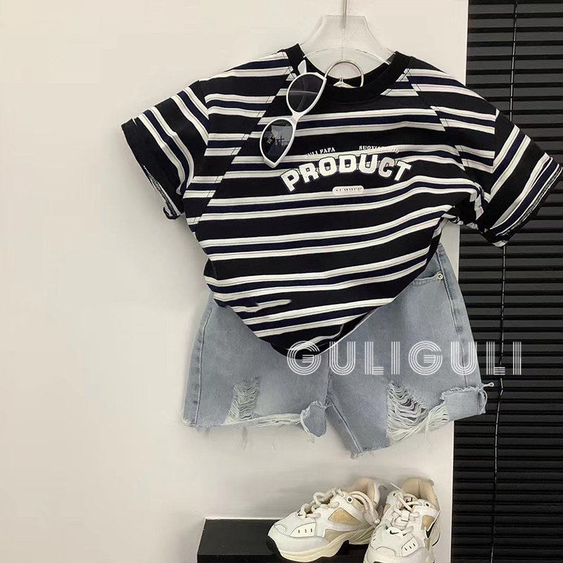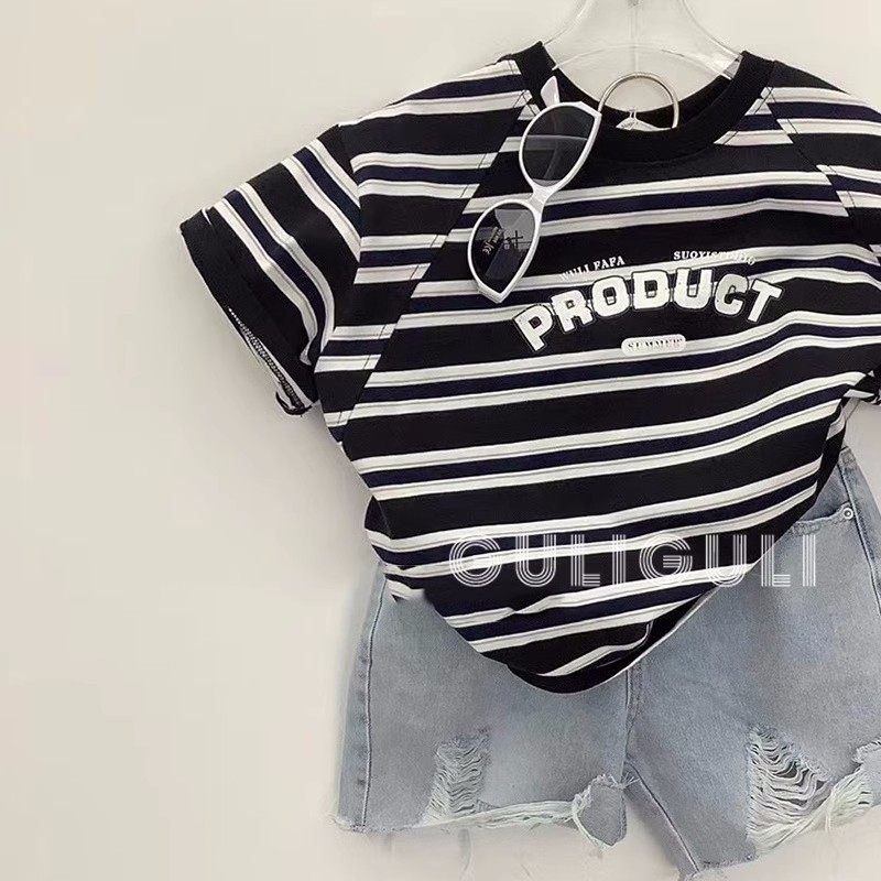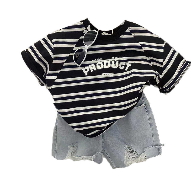 男童洋气时髦条纹短袖T恤宝宝休闲韩版圆领纯棉打底衫小男孩夏装