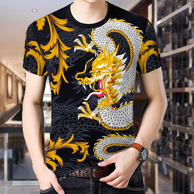 3D印花短袖男潮流t恤男学生潮流男装夏季短袖中国风男装