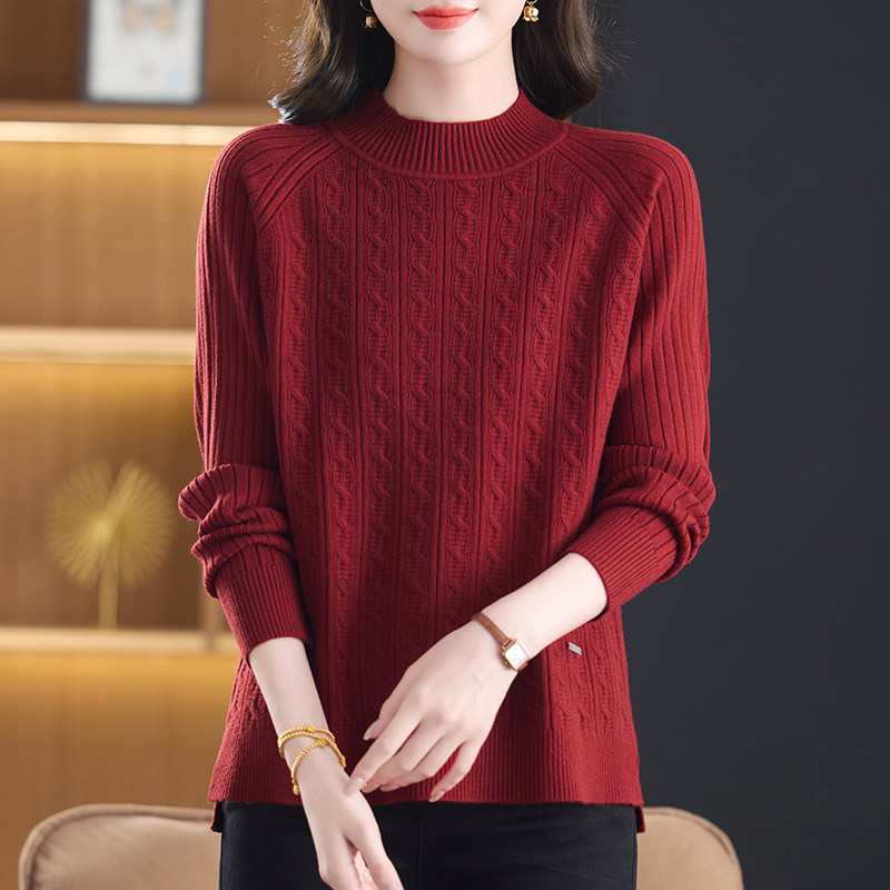 妈妈打底衫冬季新款半高领宽松百搭毛衣洋气短款中年女士针织衫
