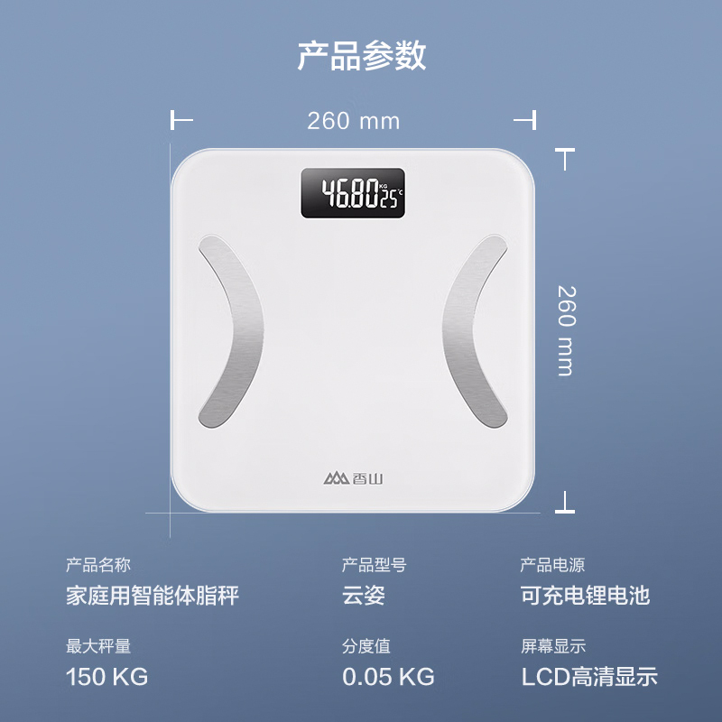 香山精准电子秤体重秤家用体脂称充电智能测脂肪小型人体秤女宿舍
