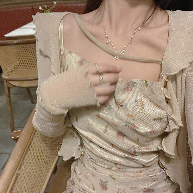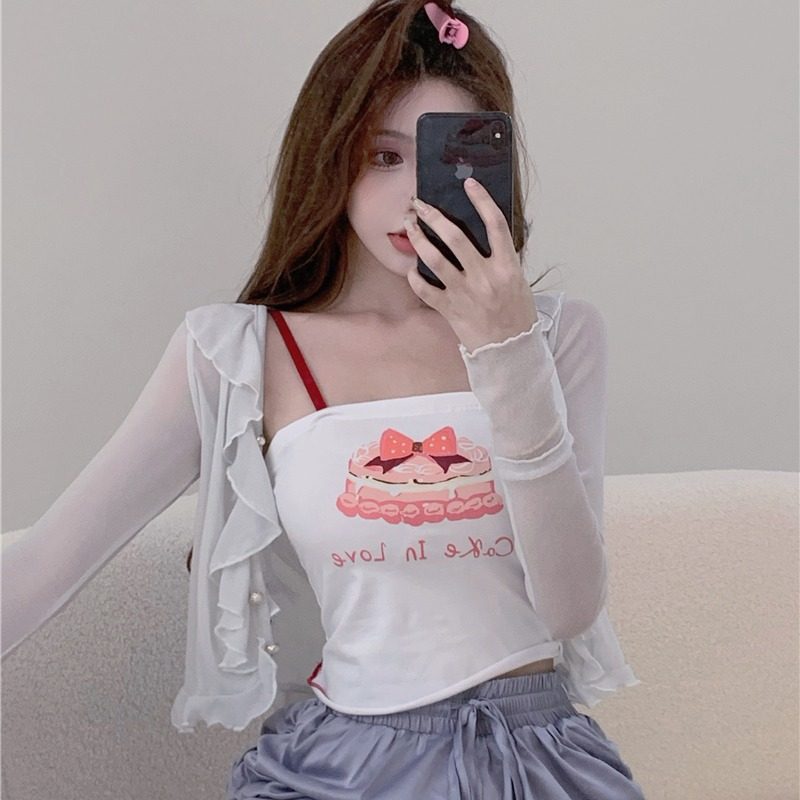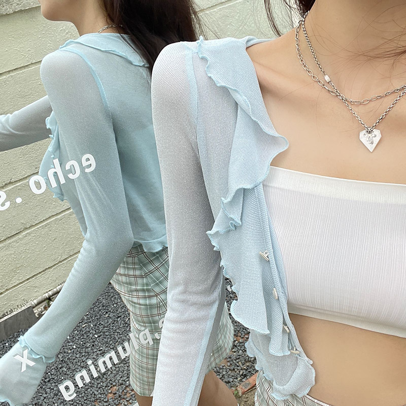 纯欲温柔风荷叶边防晒冰丝开衫外套长袖短款上衣银丝雪纺小披肩女