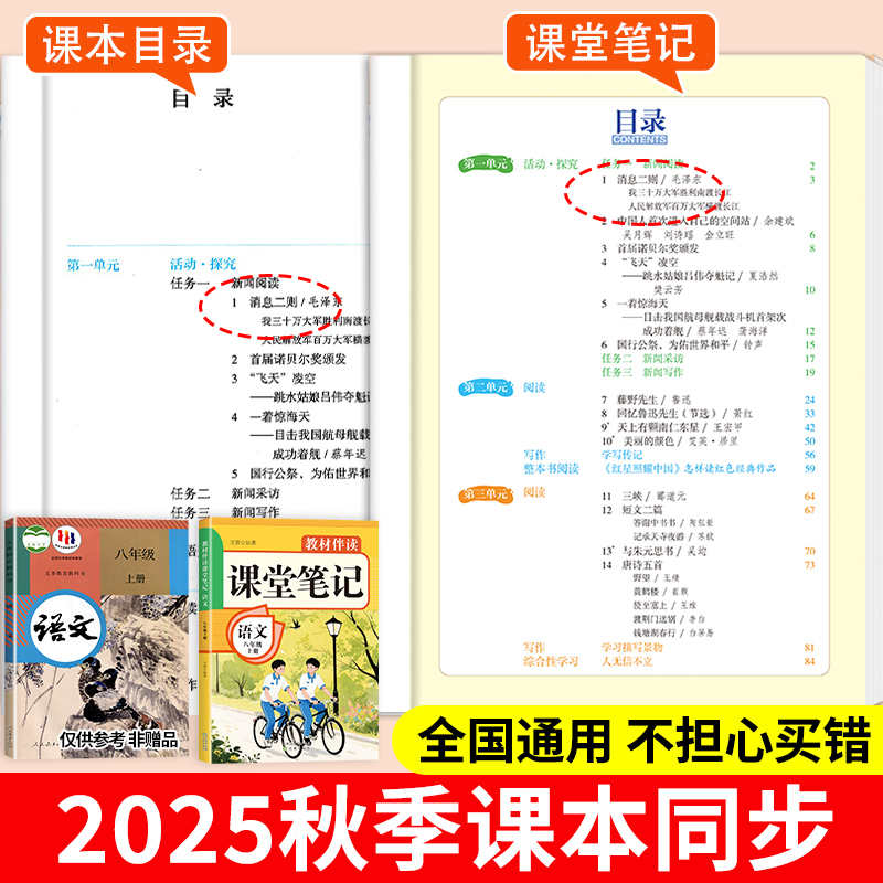 2025新版八年级上册课堂笔记配套人教版语文数学英语课本全套教材书8年级上中学教材全解同步解读新教材初二预习教辅资料下册 下A