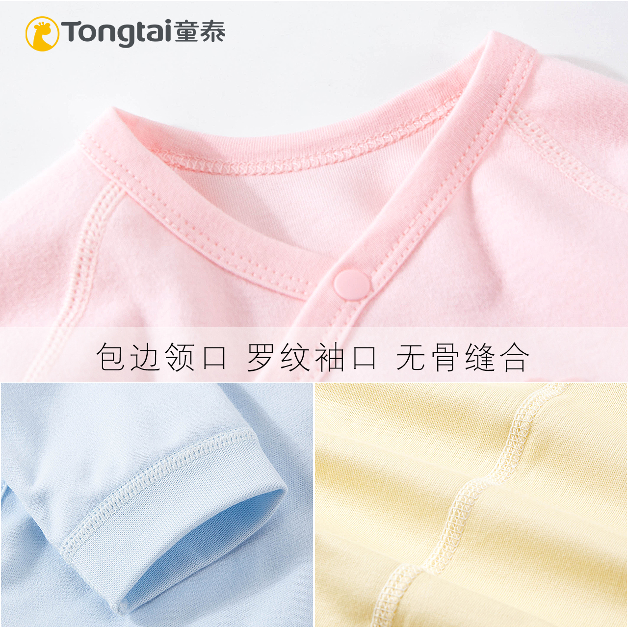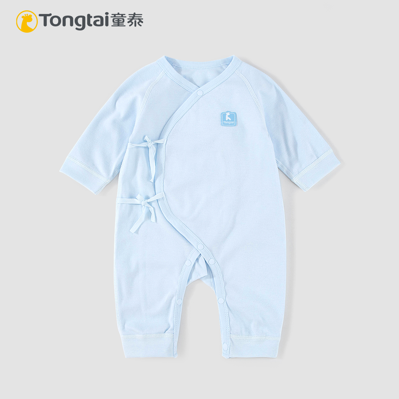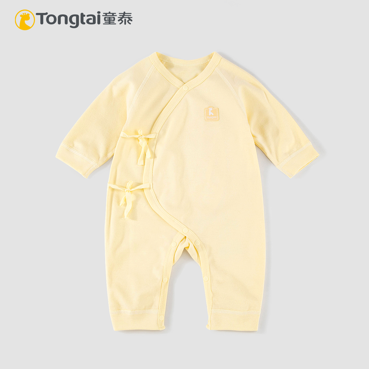 童泰新生婴儿衣服春秋偏开系带长袖哈衣爬爬服初生宝宝纯棉连体衣