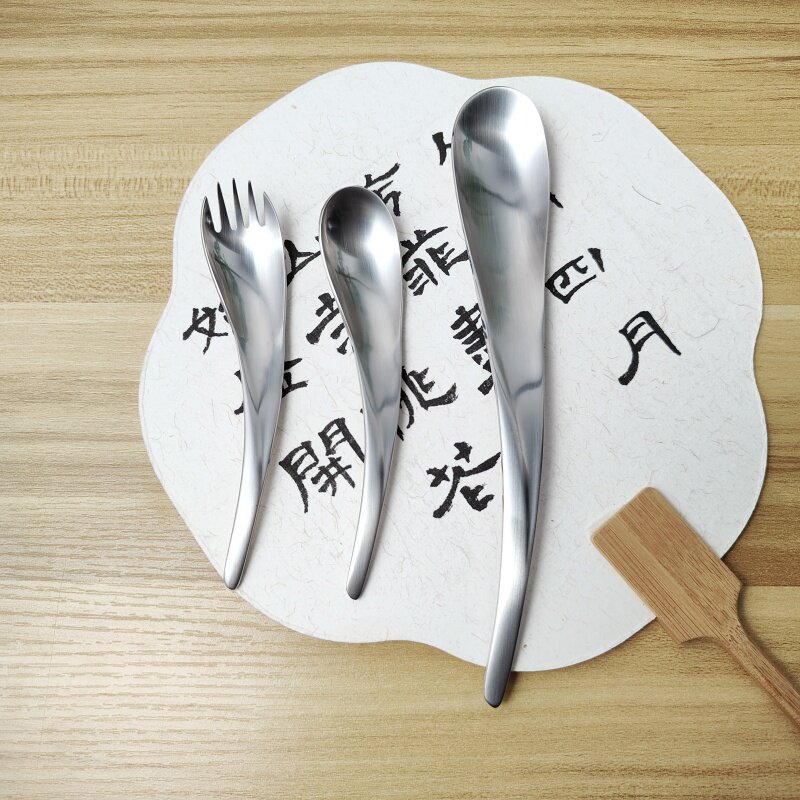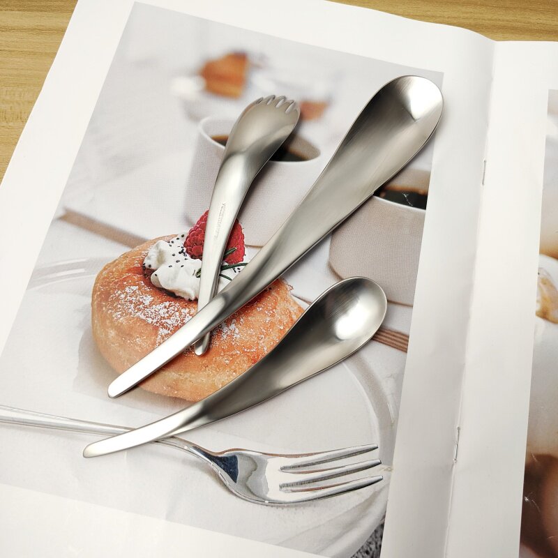 VE日式极简甜点勺叉水滴小勺小叉