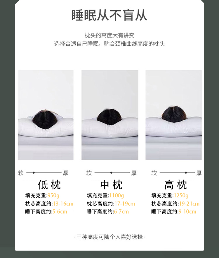 全季酒店枕头枕芯一对家用护颈椎助睡眠舒适不变形不塌陷带枕套