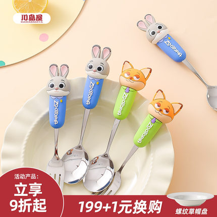 川岛屋迪士尼疯狂动物城不锈钢勺子叉子家用儿童汤匙长柄吃饭调羹