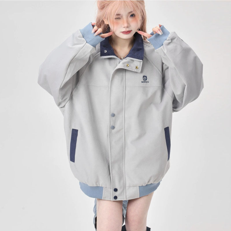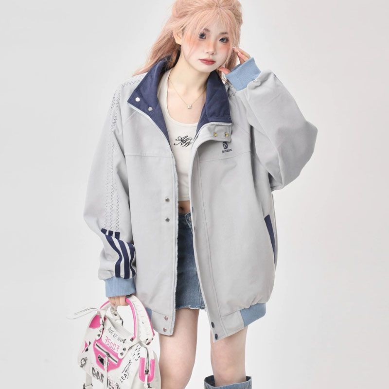 美式复古个性宽松拼接棒球服外套男女春秋新款刺绣立领夹克上衣潮