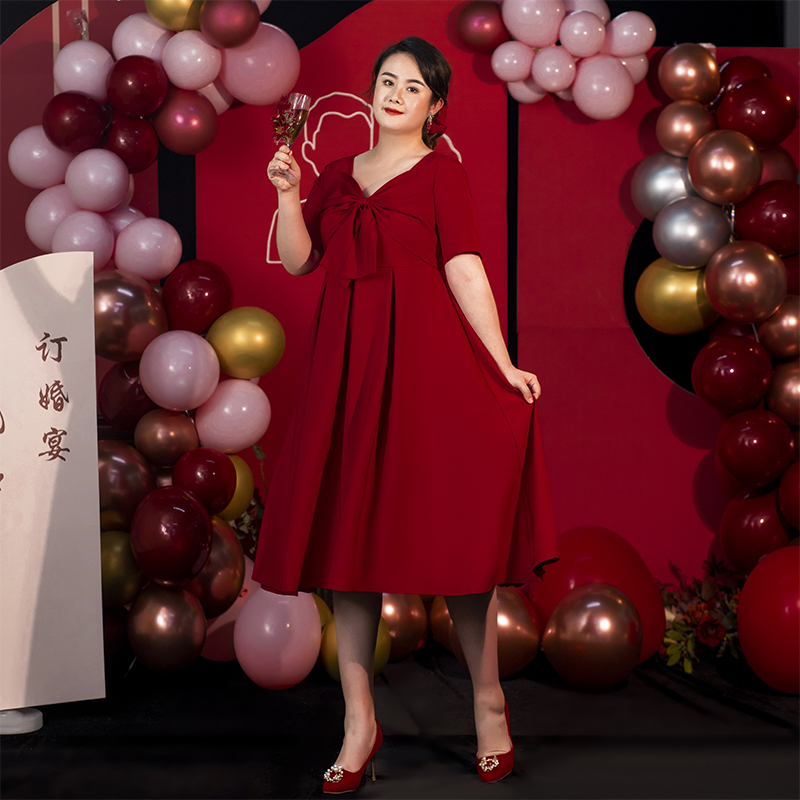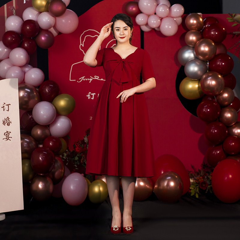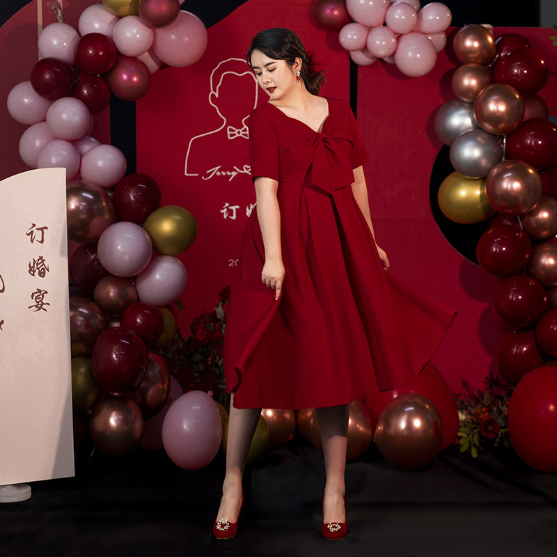 大码敬酒服胖mm新娘孕妇遮肚结婚订婚礼服高腰酒红色回门加肥加大