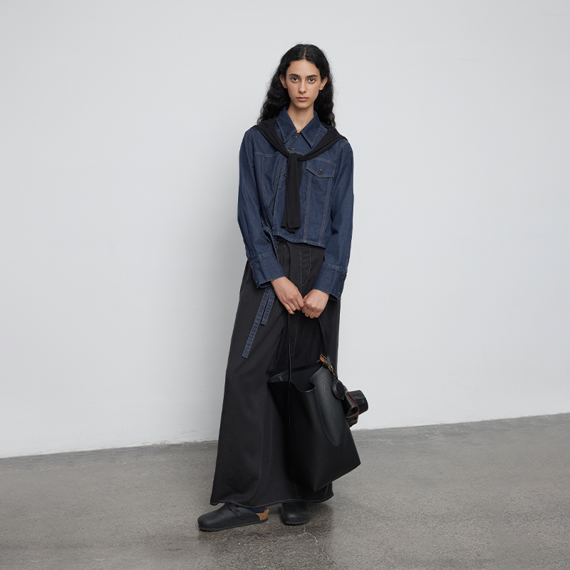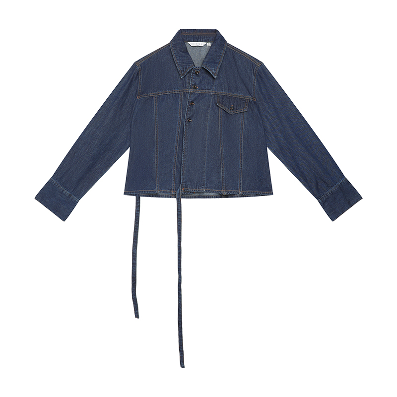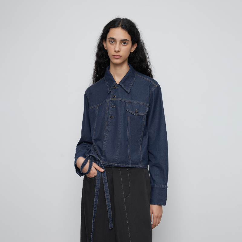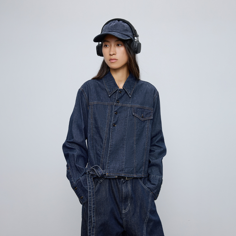 纯棉 半圆原创女装[复古]2025秋季衬衫领短款水洗不对称衬衫女