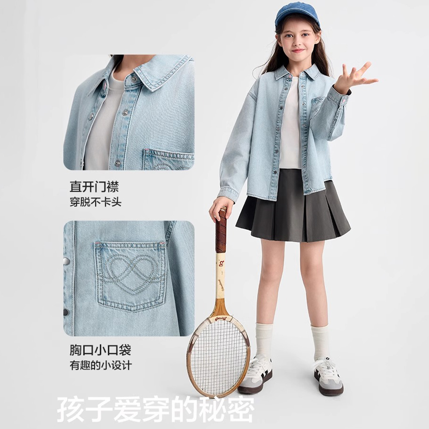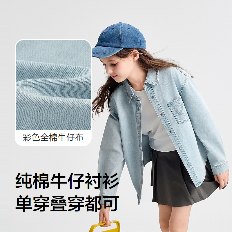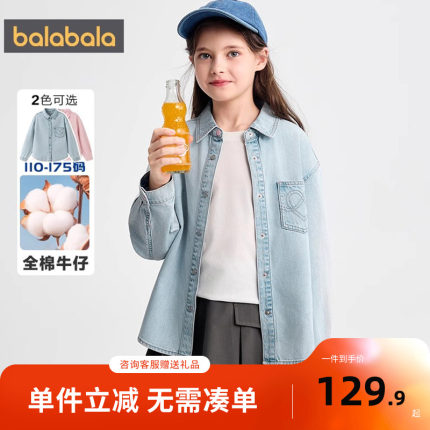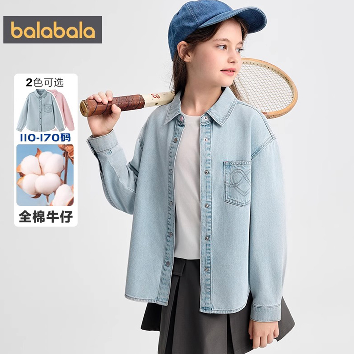 巴拉巴拉女童衬衫纯棉长袖2025秋装新款儿童外套上衣牛仔衫全棉潮