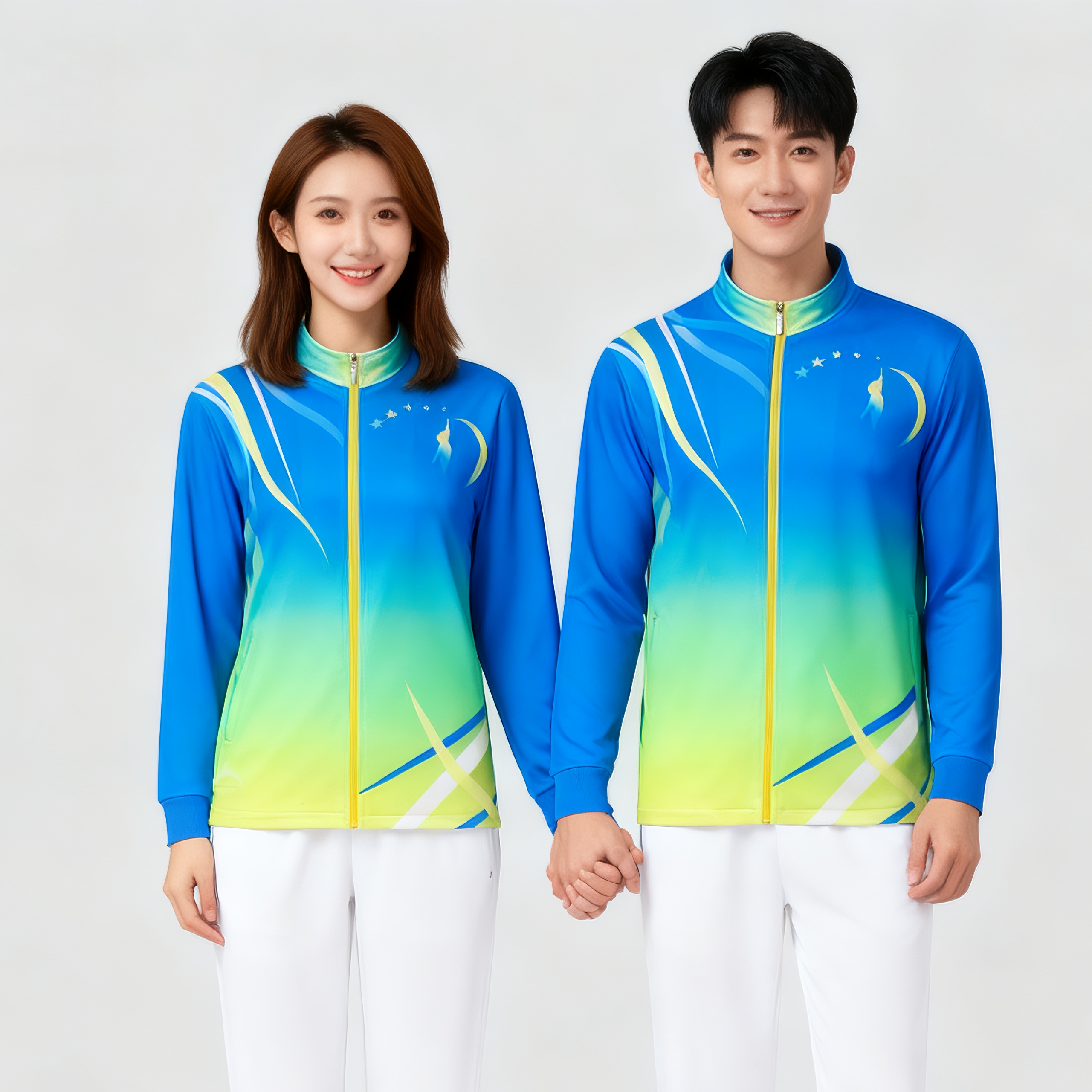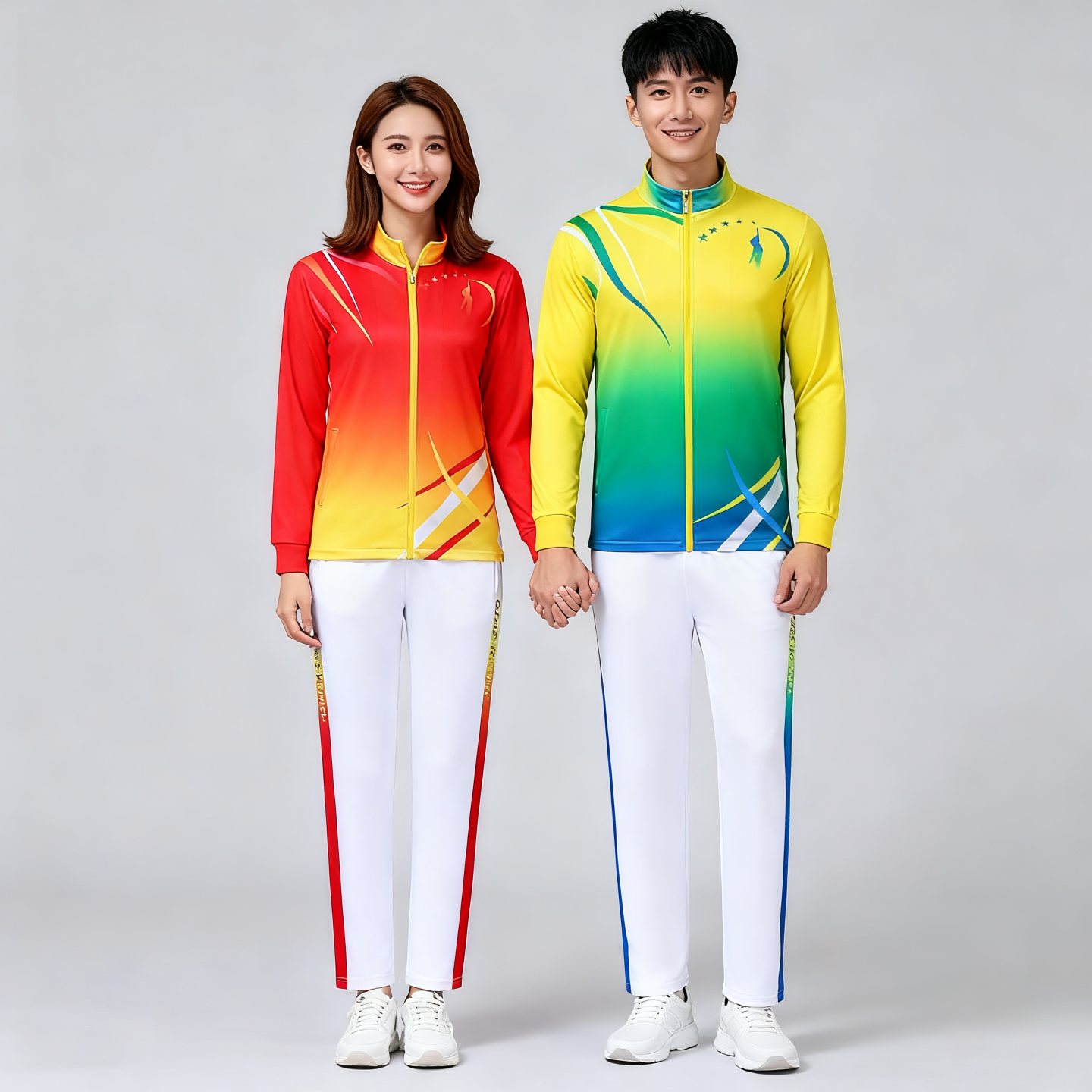 新款佳木斯健身操春秋季运动服套装女男中老年广场舞徒步队团体服