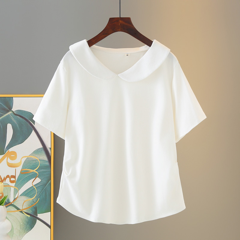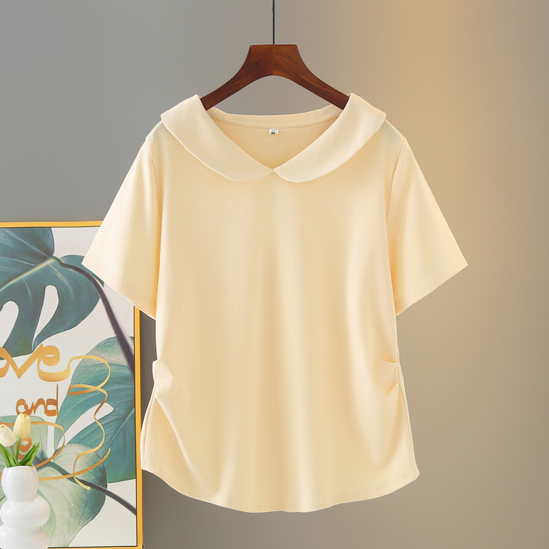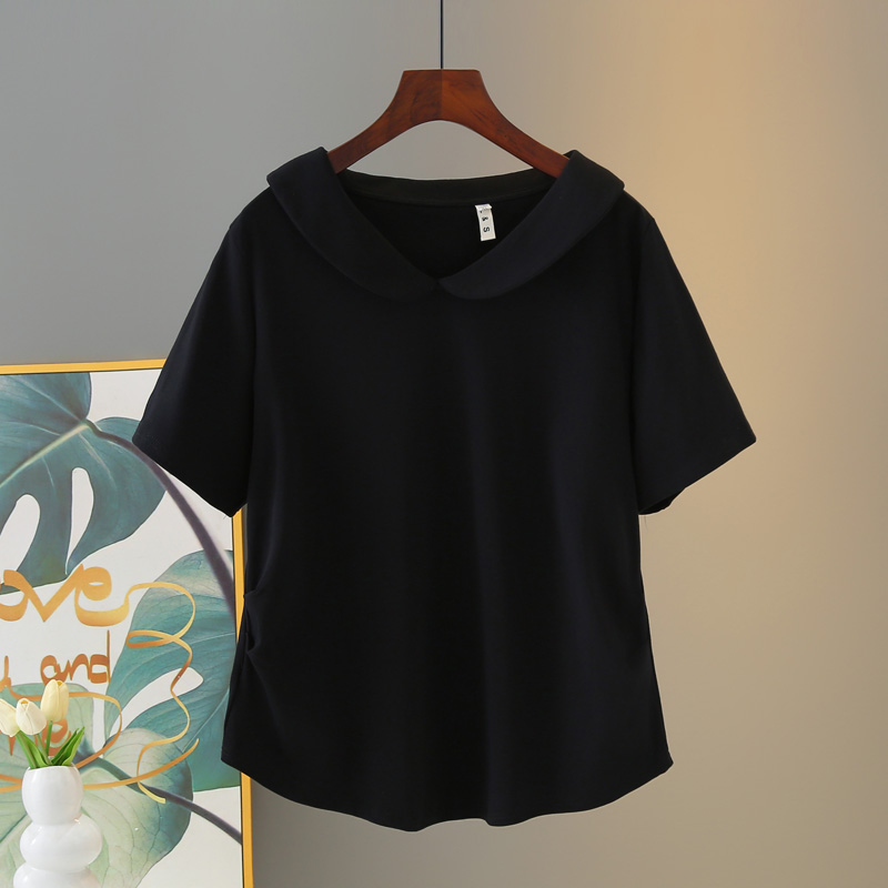大码翻领正肩短袖t恤女2025夏季新款优质胖mm宽松百搭遮肚子上衣