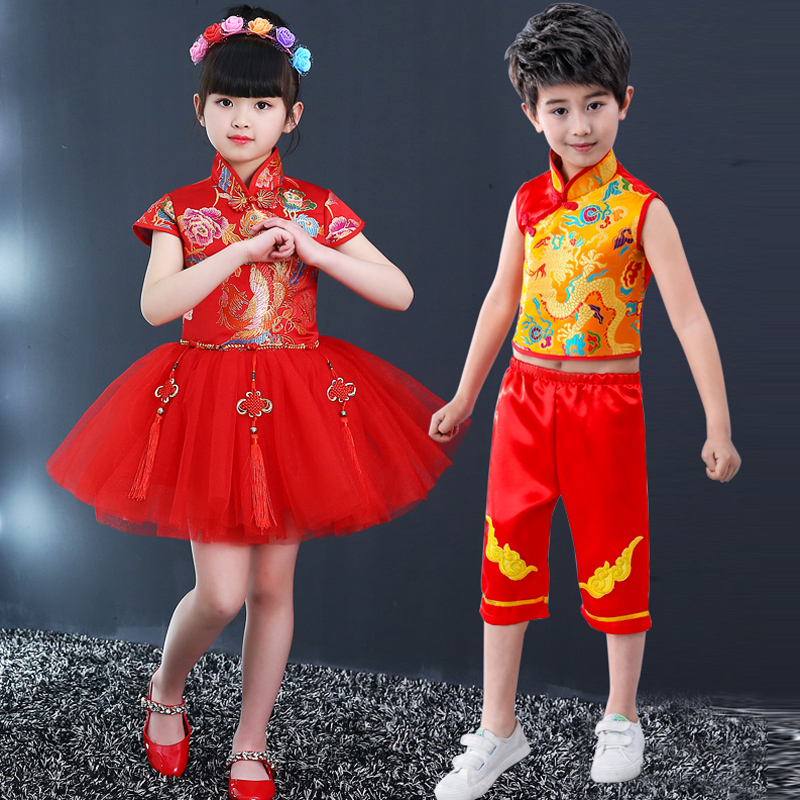 六一演出服儿童男女套装中国结蓬蓬裙红色合唱服女童公主裙舞蹈服