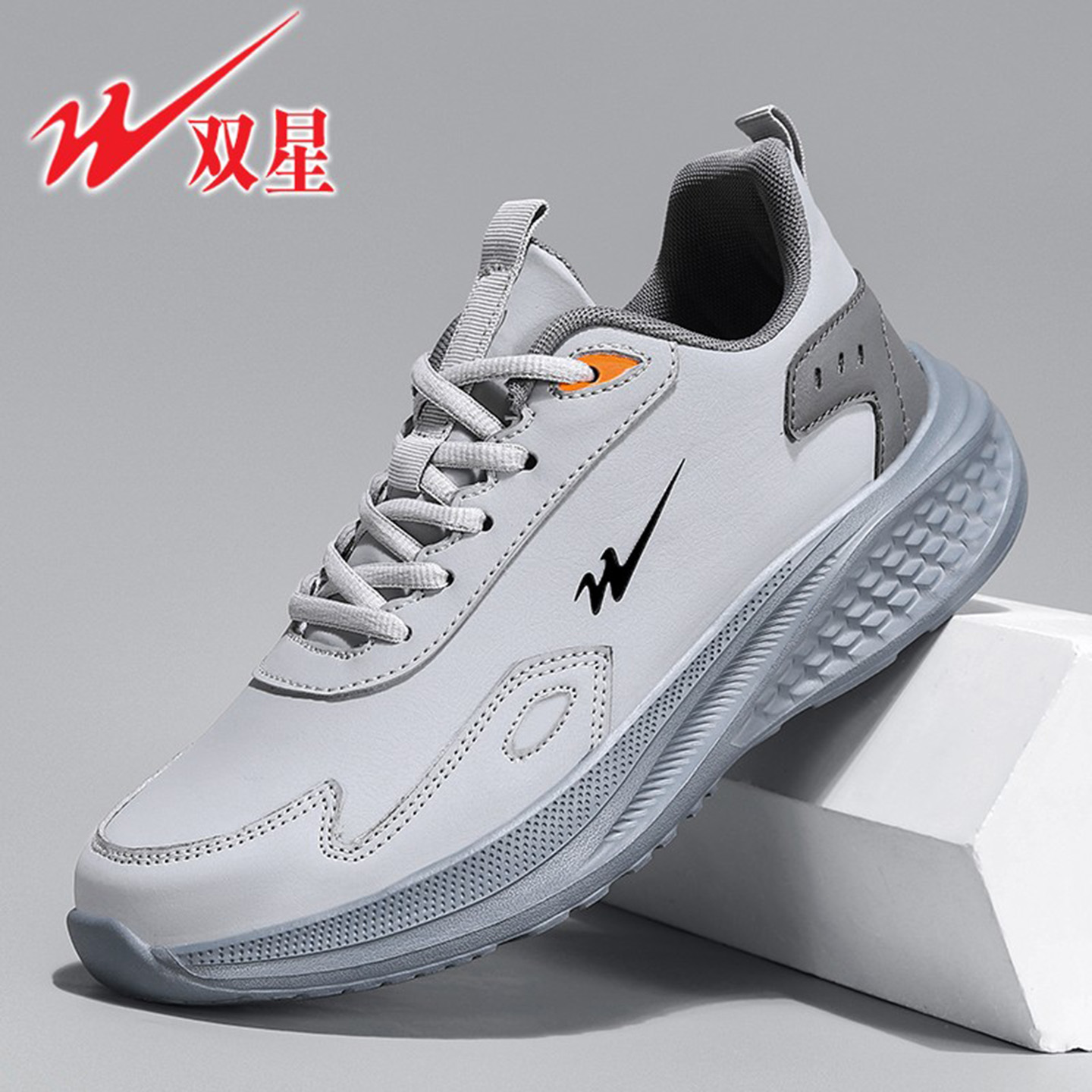 双星男鞋秋冬黑色运动鞋2025新款防滑软底休闲鞋皮面防水跑步鞋子