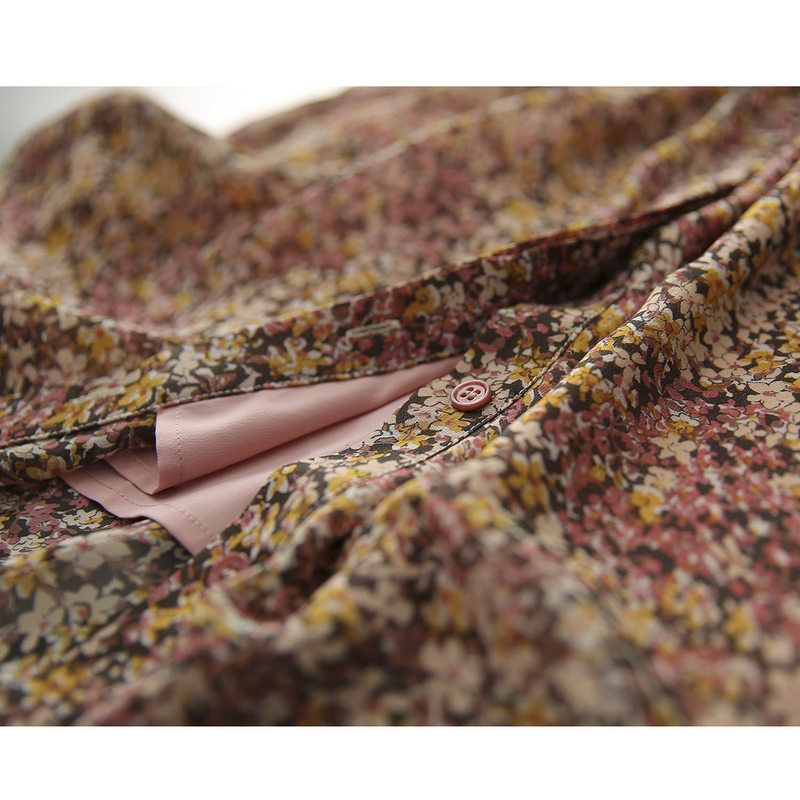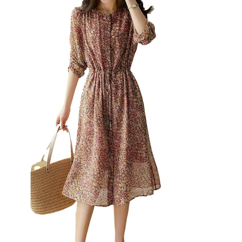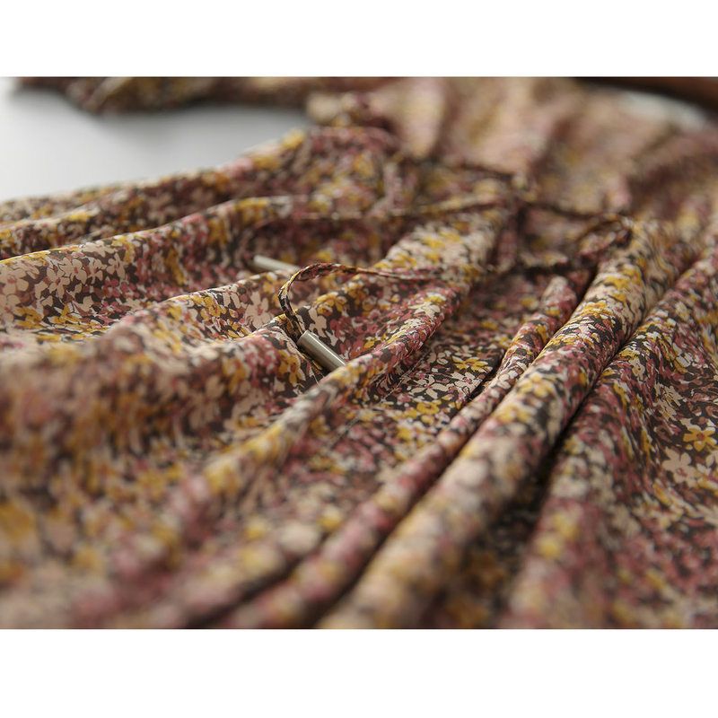 高品质桑蚕丝甜美真丝碎花连衣裙衬衫式系带抽绳夏季法式女装裙子